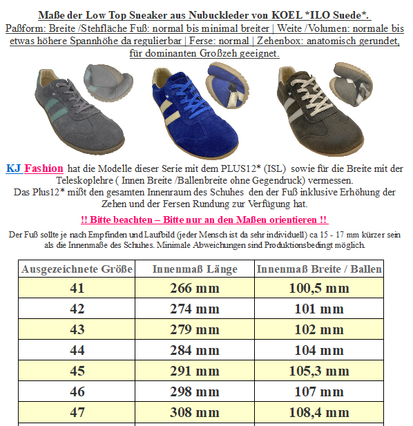Weite (diese bezieht sich auf das Volumen im Schuh) für normal hohen bis etwas höheren Spann geeignet | Breite (Stehfläche Fuß) normal bis etwas breiter | Mittelfuß: normal bis etwas breiter | Ferse: normal | Zehenbox: anatomisch gerundet geformt