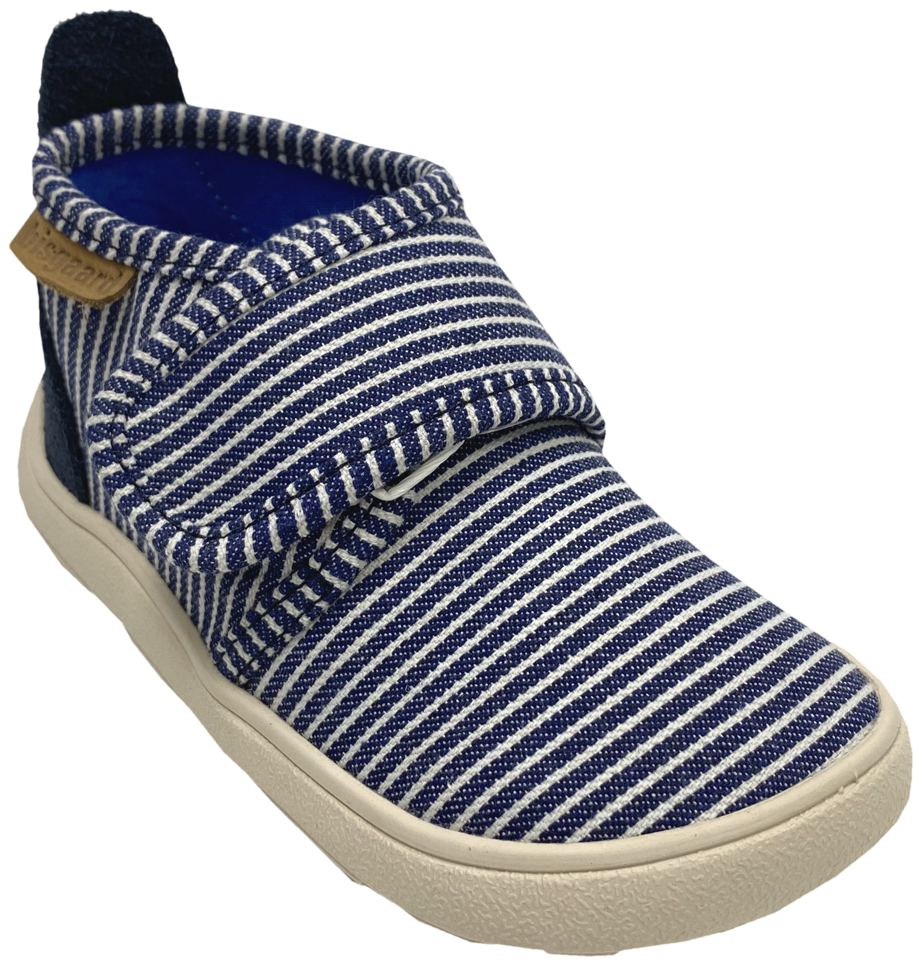 Super leichte und richtig knautschbare Hausschuhe / Barfußschuhe mit breitem Klett, aus robustem Baumwolle Canvas mit sehr weicher Minimalsohle von dem dänischen Hersteller BISGAARD.