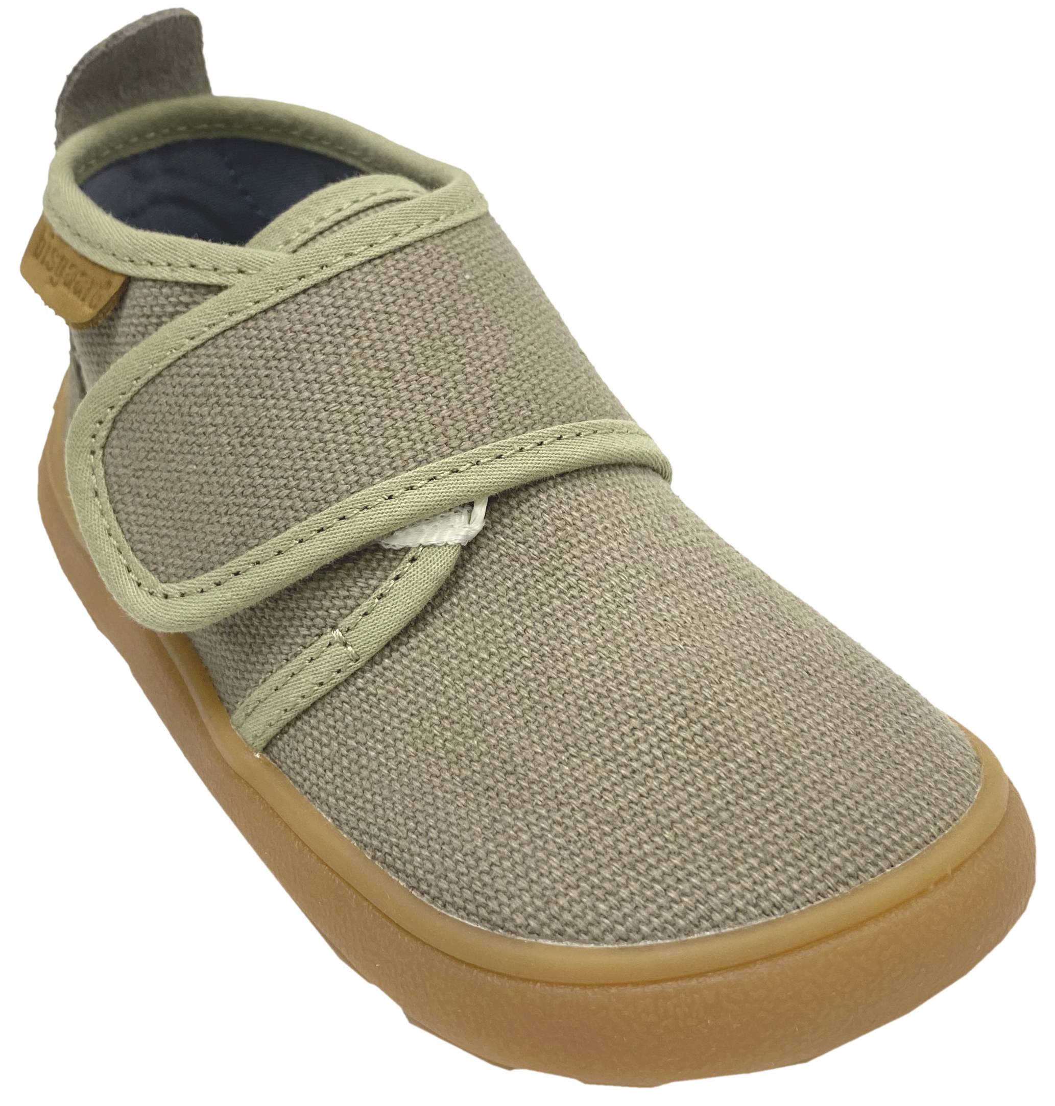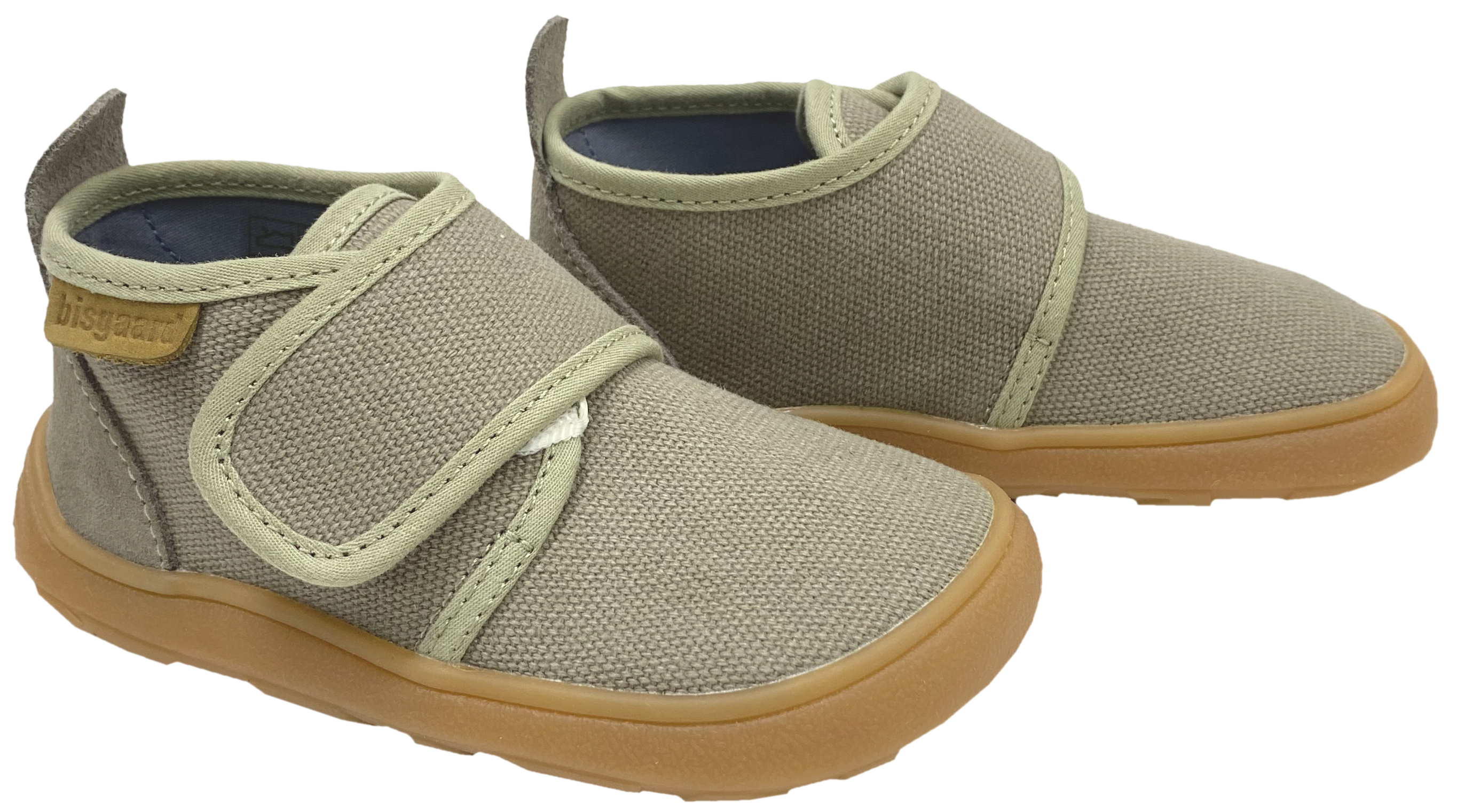 Super leichte und richtig knautschbare Hausschuhe / Barfußschuhe mit breitem Klett, aus robustem Baumwolle Canvas mit sehr weicher Minimalsohle von dem dänischen Hersteller BISGAARD.