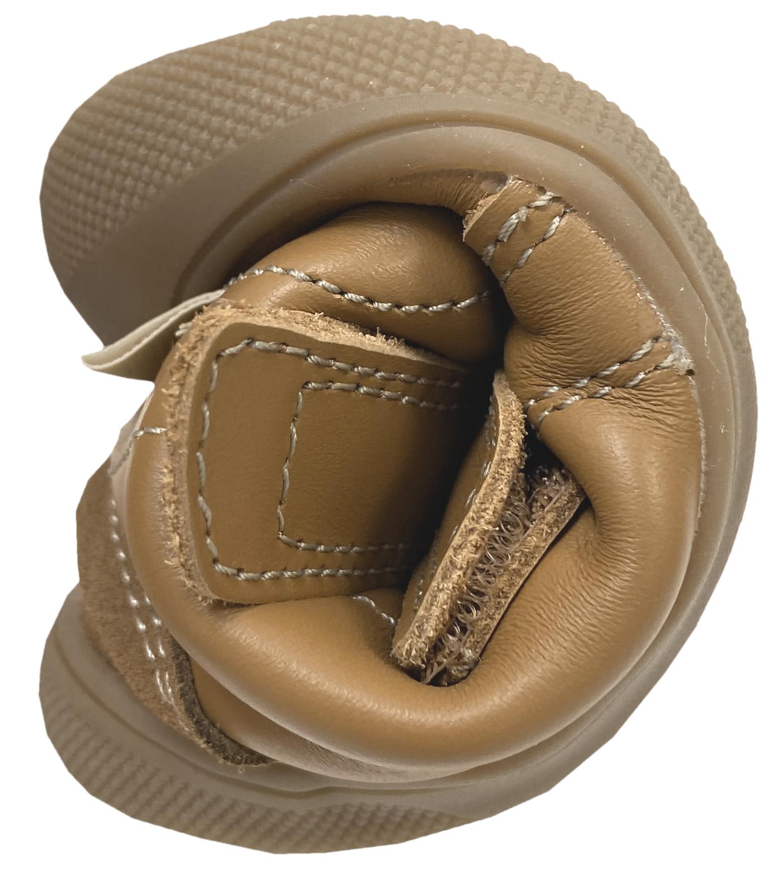 - an der Spitze im Zehenbereich ist die Sohle etwas hochgezogen als Schutzkante