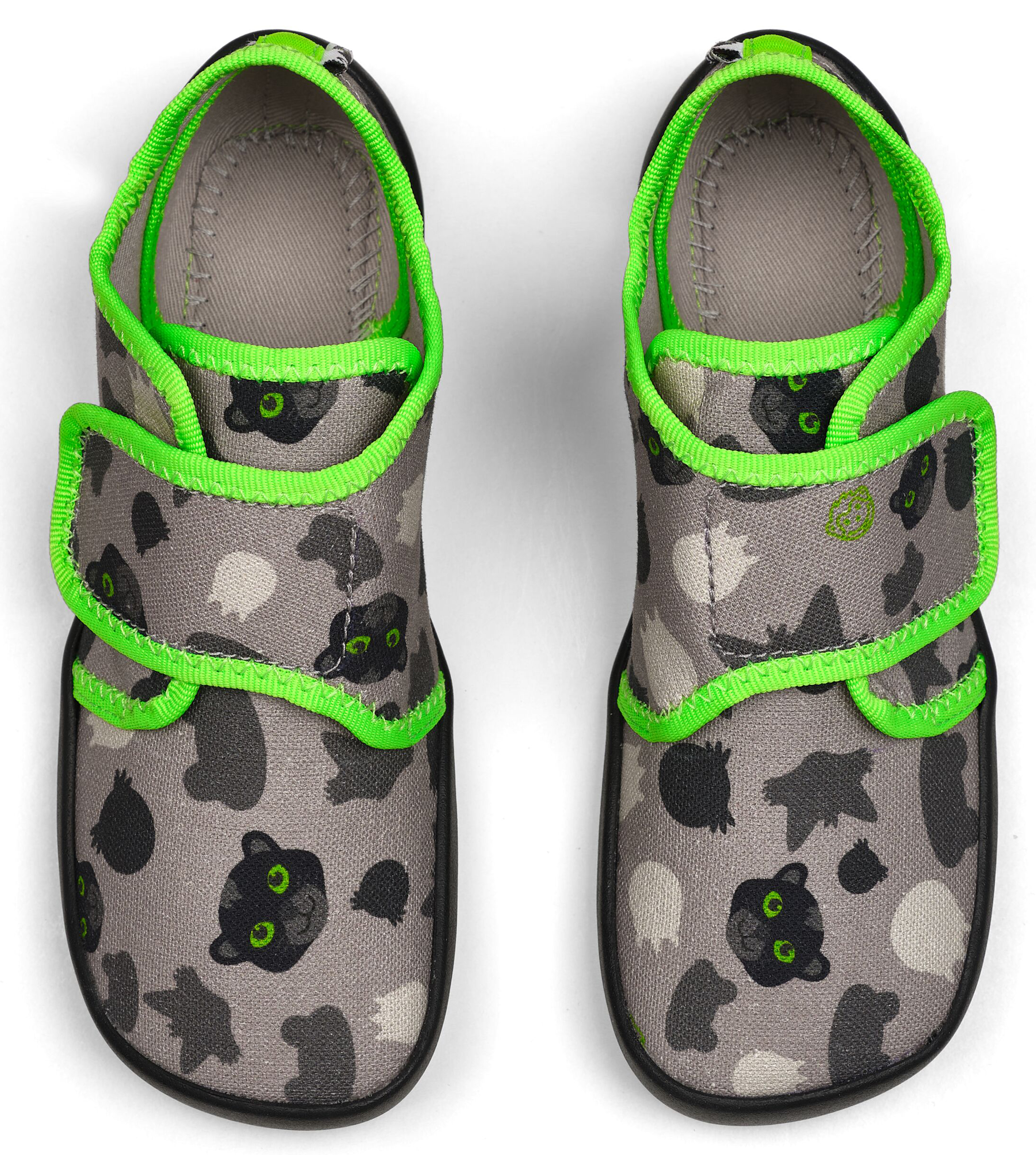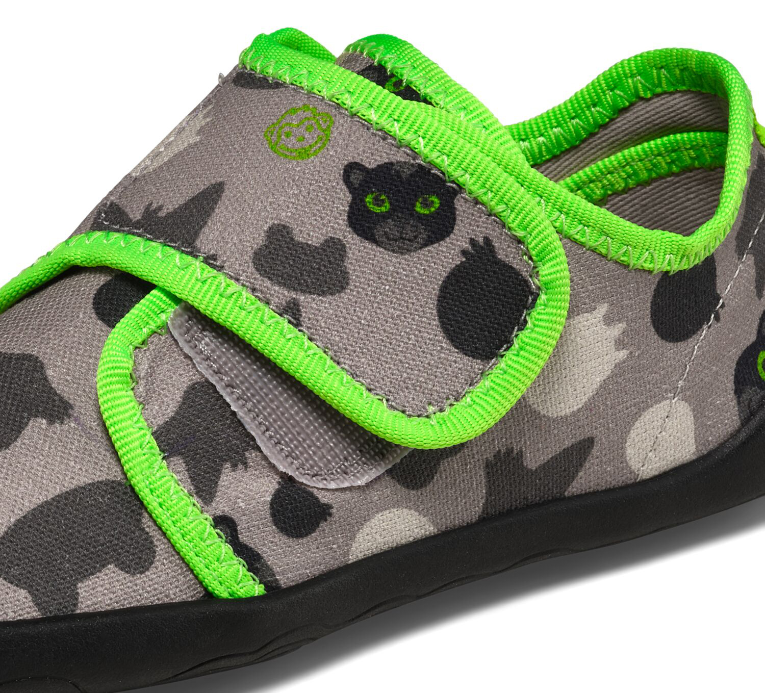 Artikel: Slipper Cotton Movy Motiv Panther in Schwarz / Grau / Lemon Grün Tönen
