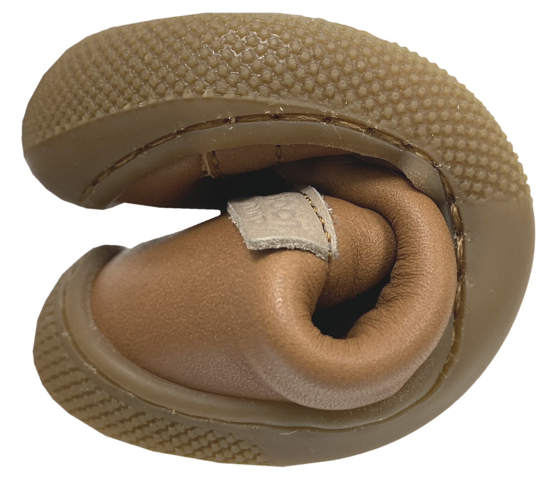 - quer und längs flexible Gummisohle mit Minimalprofil, Nullabsatz und keinerlei Erhöhungen im Mittelfuß oder der Ferse
