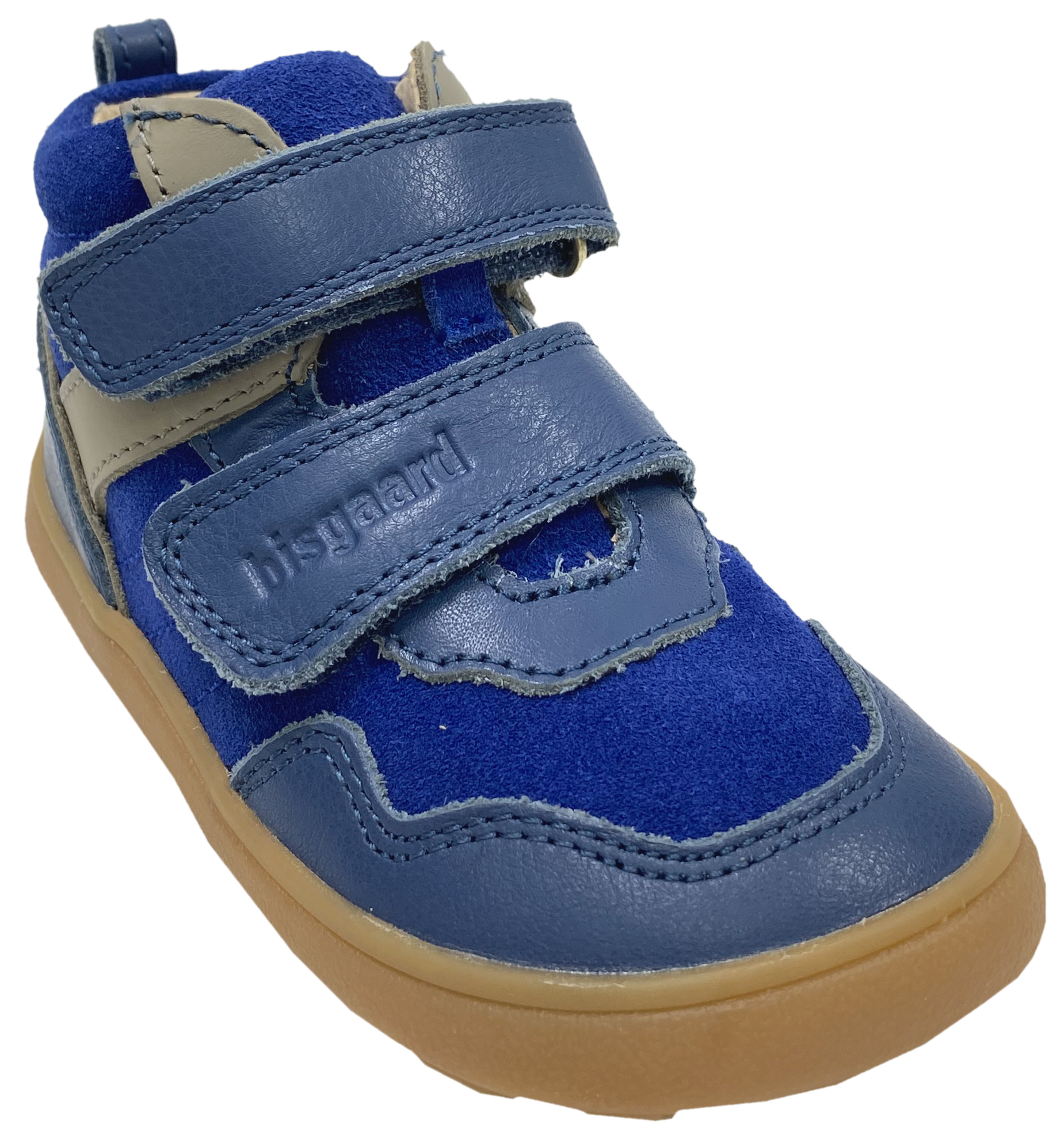 Sportlich schicker Mid-Top-Barfußschuh / Halbschuh aus weichem Nubukleder mit Nappeleder Einsätzen, innen mit Glattleder ausgekleidet, quer und längs flexibler Minimalsohle und praktischen Doppelklettverschlüssen, aus der Barefoot-Linie von dem dänischen Hersteller BISGAARD.