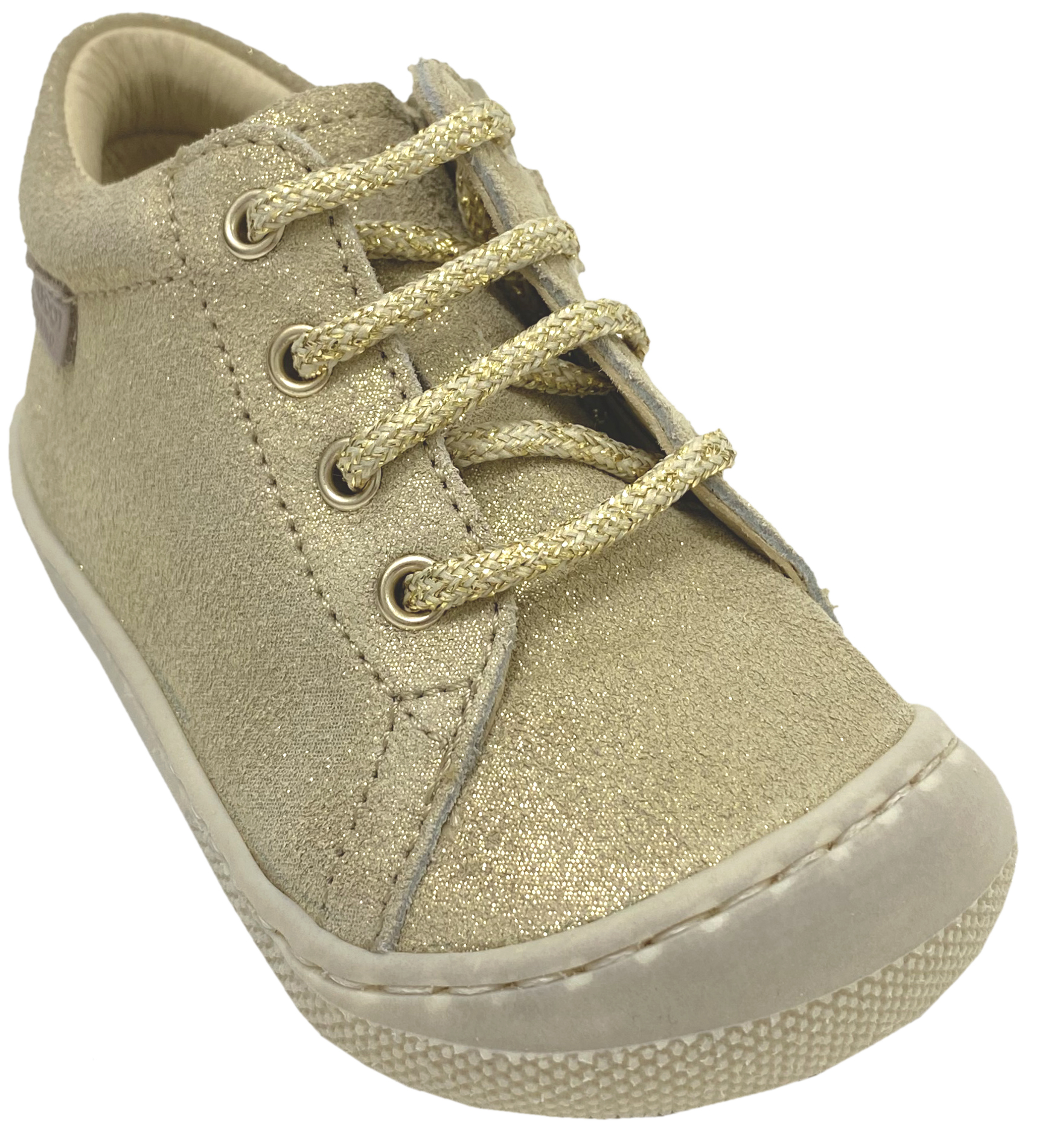Modell: Barefoot Amur Suede Schnürer mit Zipp in Platinum / Gold Glitter