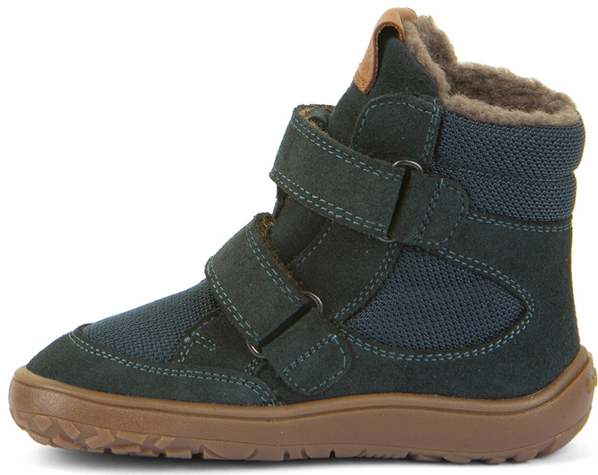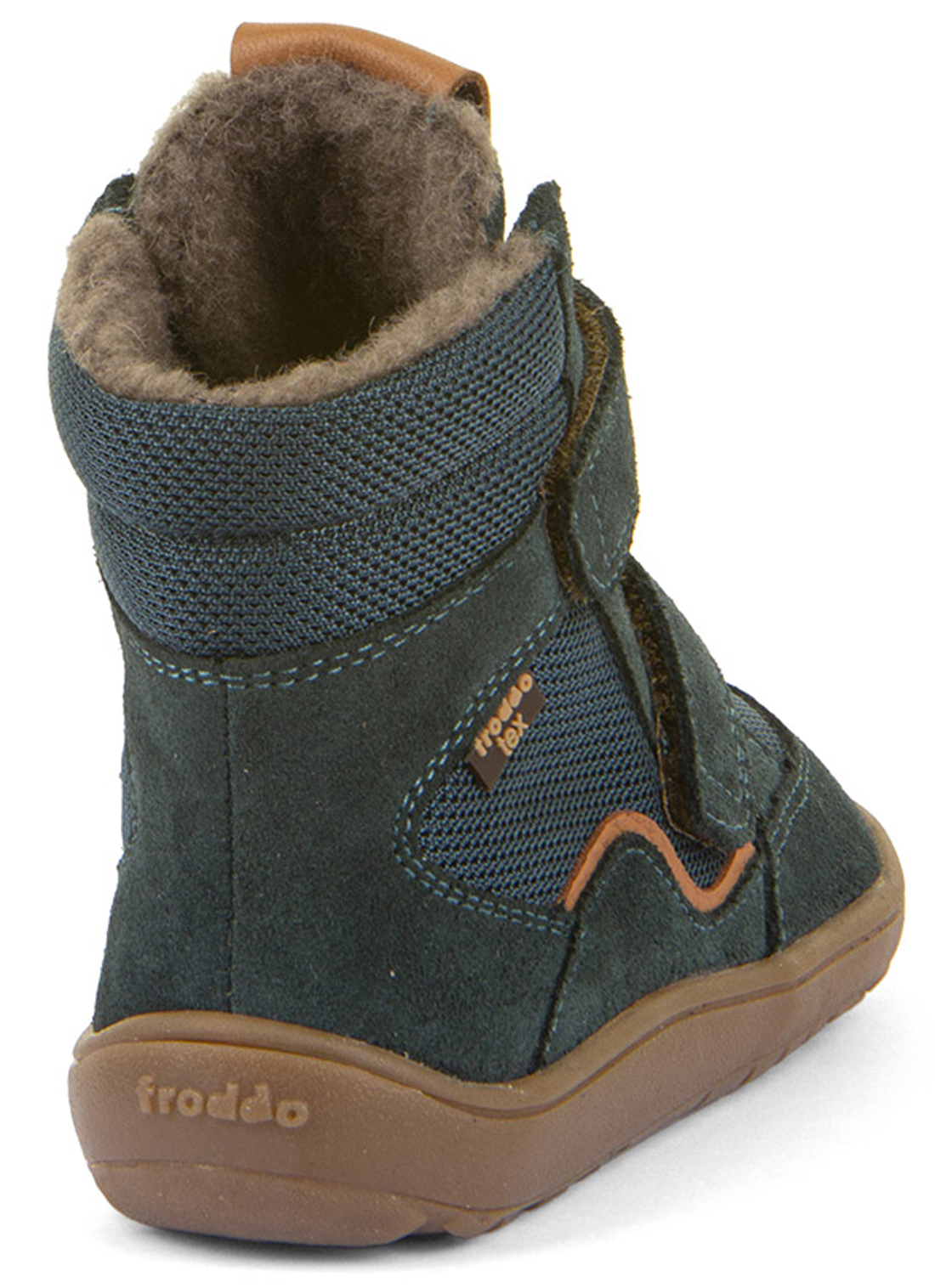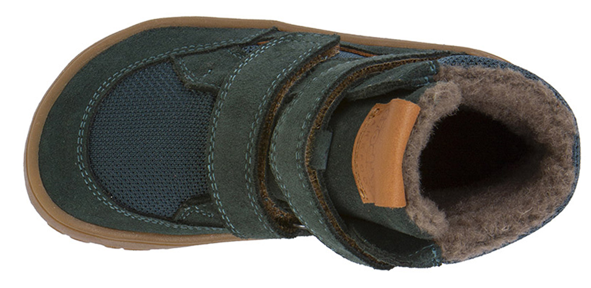 Die halbhohen ( bis etwa Mitte der Wade gehenden ) Winter-Barfußschuhe von FRODDO bieten Kindern optimalen Schutz und Komfort in der kühleren Jahreszeit – mit warmem, nicht zu voluminösem, Schurwollfutter, stark wasserabweisender Tex-Membran und einer quer und längs flexiblen Minimalsohle mit griffigem Profil sowie zwei breiten Klettstreifen zur Regulierung der Paßform.