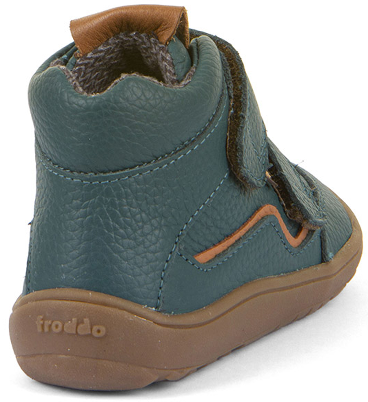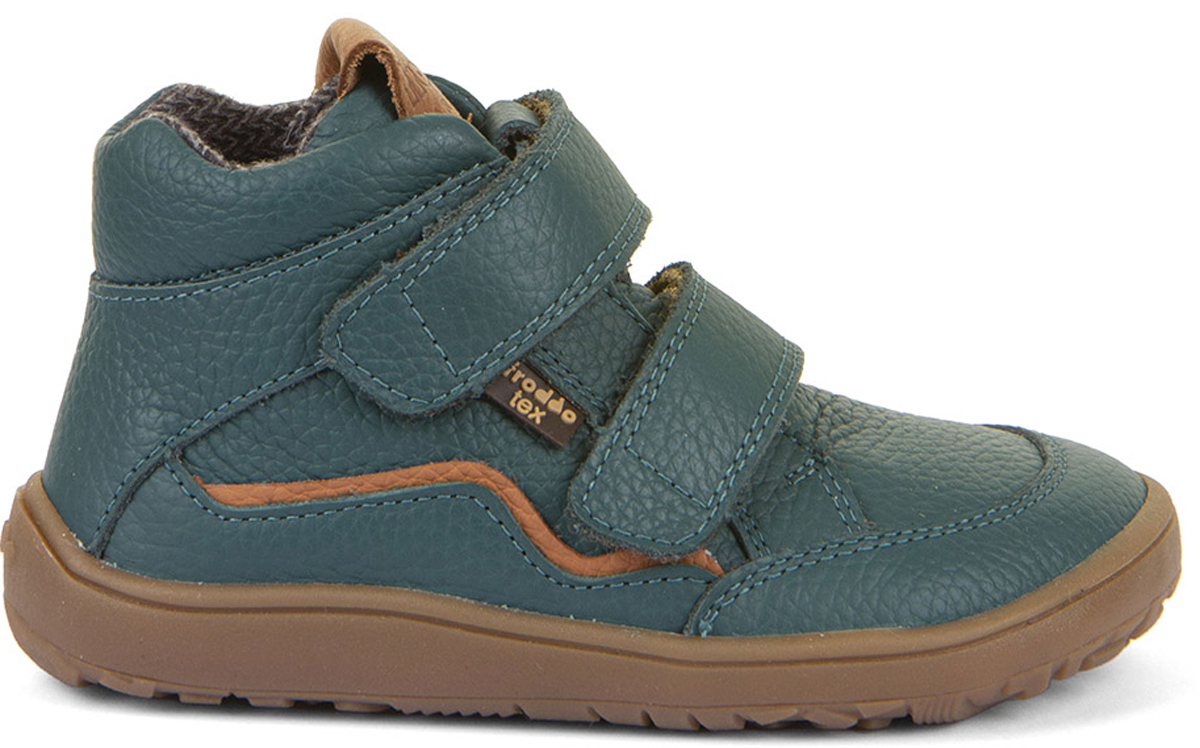 Halbhohe Barfußschuhe mit anatomischer Zehenbox, Nullabsatz und Minimalsohle mit gutem Gripp, aus weichem Nappaleder mit einer Tex Membran zwischen den beiden Materialschichten, mit Doppelklett zur optimalen Regulierung, innen mit angenehm zu tragendem Textil Futter ( kein dickes Winterfutter ) ausgelegt, für Kids von dem kroatischen Schuhhersteller FRODDO.