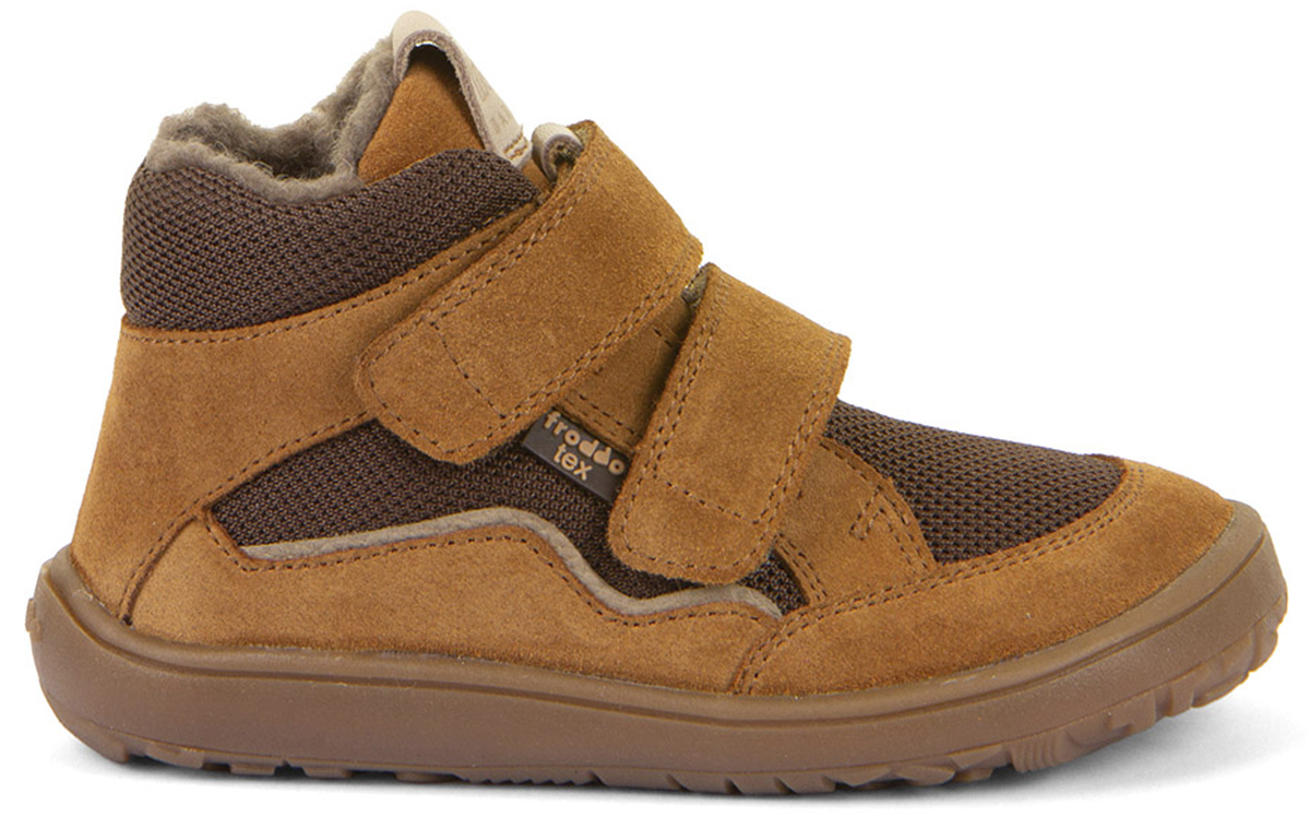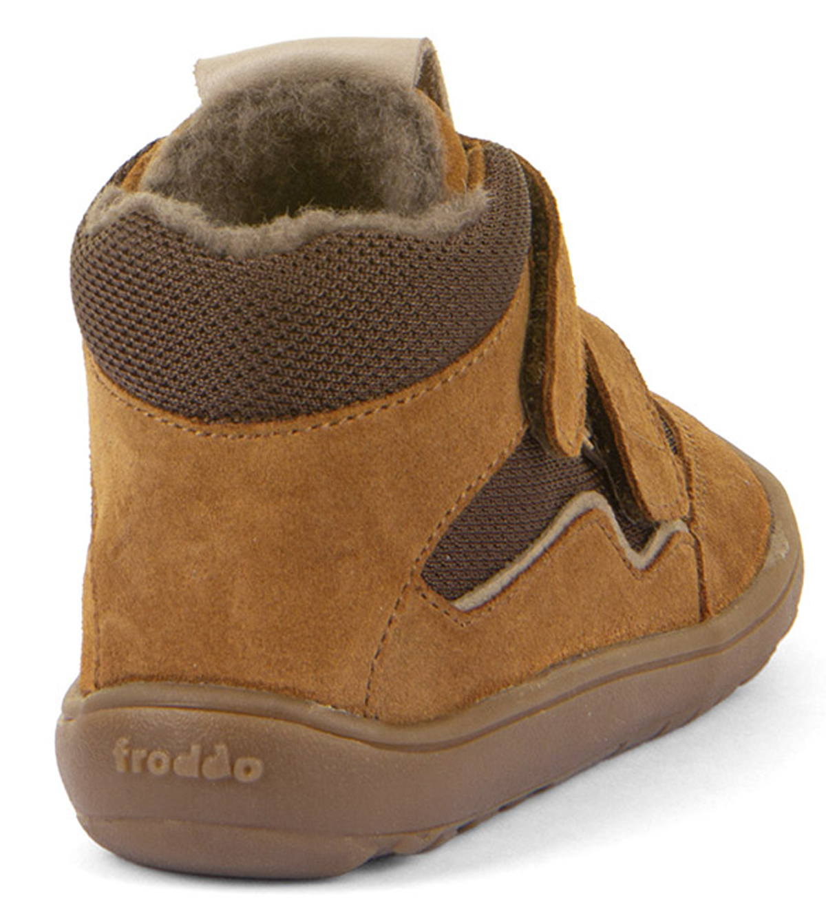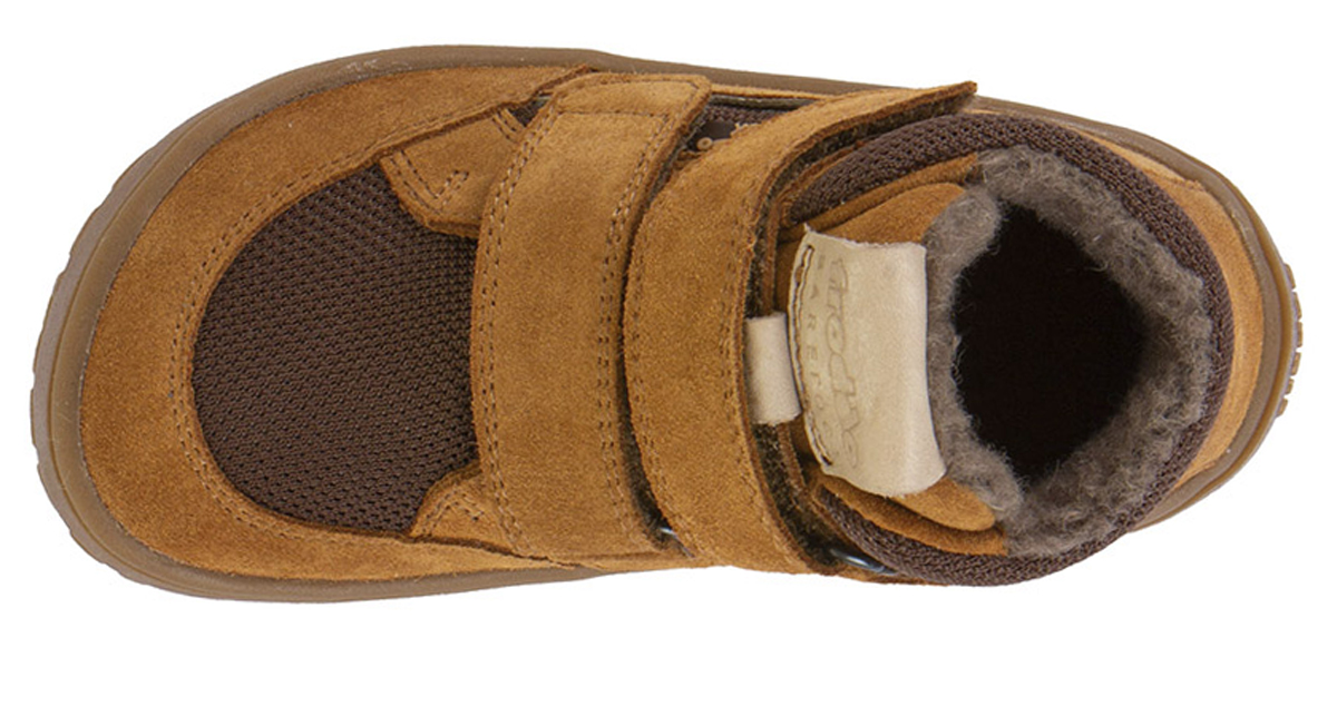 Halbhohe Barfußschuhe mit anatomischer Zehenbox, Nullabsatz und Minimalsohle mit gutem Gripp, aus weichem Leder und Mesh, mit einer Tex Membran zwischen den beiden Materialschichten, mit Doppelklett zur optimalen Regulierung, innen mit nicht zu voluminösem Schurwollfutter ausgelegt, für Kids von dem kroatischen Schuhhersteller FRODDO.