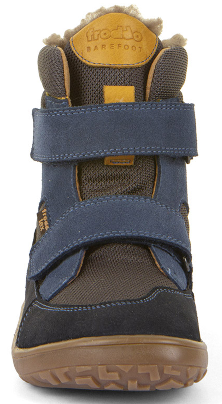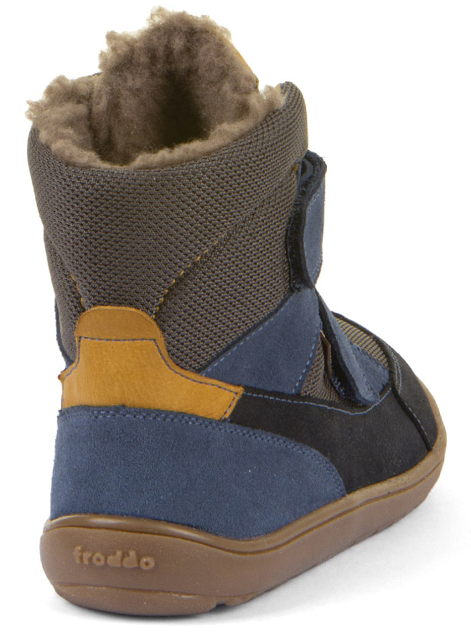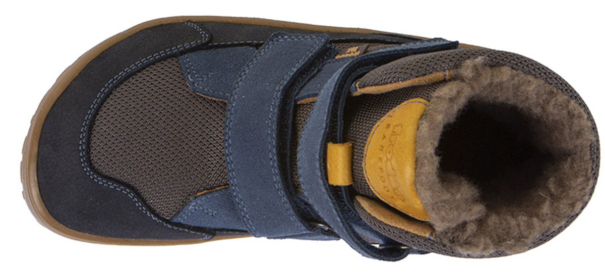 Winterstiefel / Barfußschuhe aus der "Barefoot UP Linie" - mit mehr Weite & Breite, mit anatomischer Zehenbox, Nullabsatz und Minimalsohle mit gutem Gripp, aus weichem Leder mit Mesh Einsatz, Schurwollfutter und einer Tex Membran zwischen den beiden Materialschichten, mit zwei Klettstreifen optimal an den Fuß anzupassen für Kids von dem kroatischen Schuhhersteller FRODDO.
