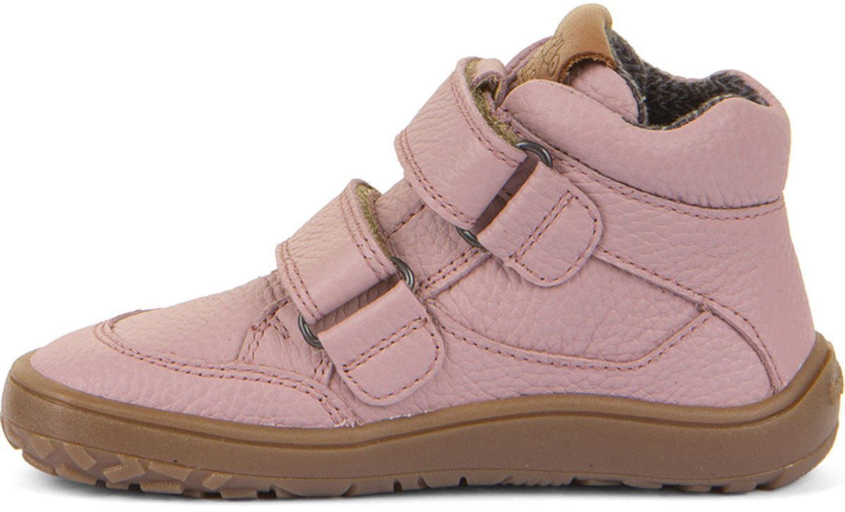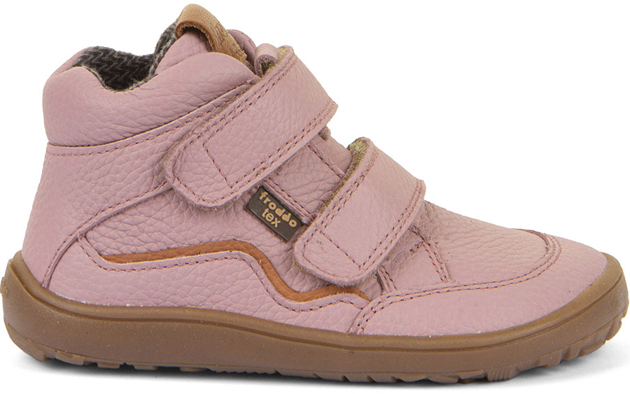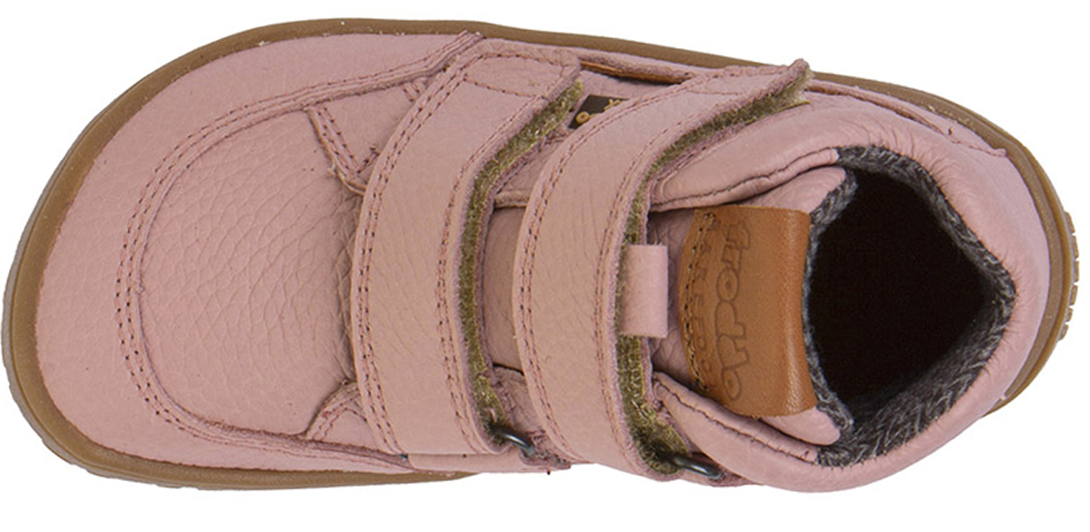 Halbhohe Barfußschuhe mit anatomischer Zehenbox, Nullabsatz und Minimalsohle mit gutem Gripp, aus weichem Nappaleder mit einer Tex Membran zwischen den beiden Materialschichten, mit Doppelklett zur optimalen Regulierung, innen mit angenehm zu tragendem Textil Futter ( kein dickes Winterfutter ) ausgelegt, für Kids von dem kroatischen Schuhhersteller FRODDO.