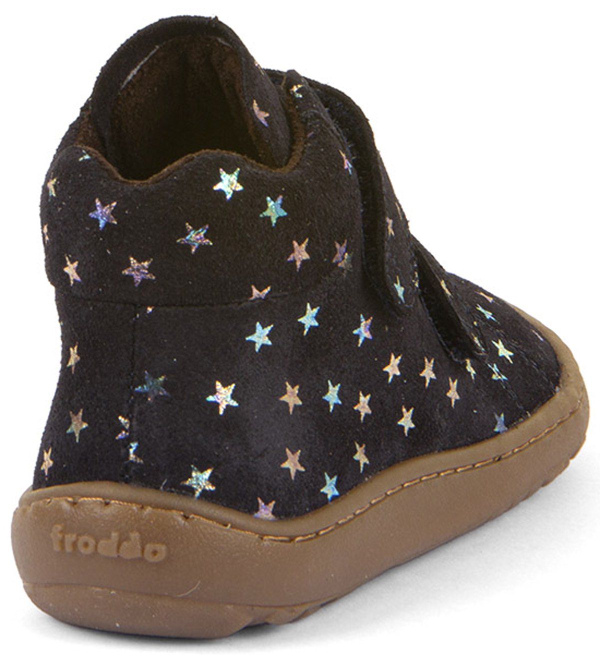 Halbhohe Barfußschuhe mit anatomischer Zehenbox, Nullabsatz und Minimalsohle mit gutem Gripp, aus weichem Leder mit Doppelklett zur optimalen Regulierung zu schließen, innen mit weichem Fleece Futter ausgelegt, für Kids von dem kroatischen Schuhhersteller FRODDO.