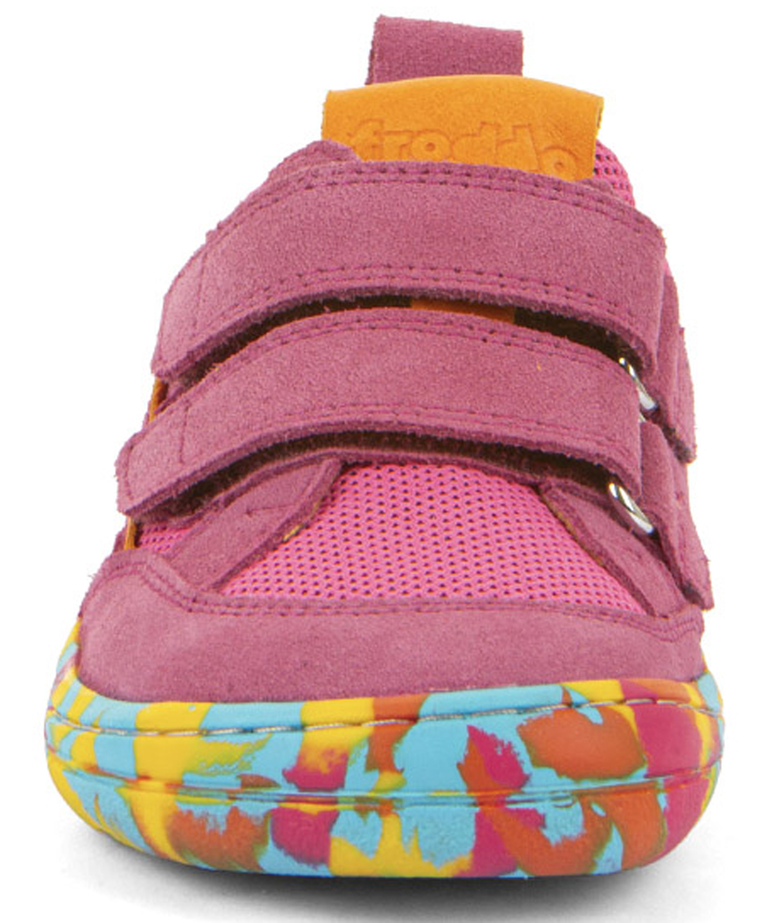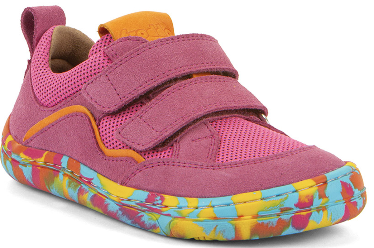 Sportlich lässige Barfuß Sneaker mit quer und längs flexibler Minimalsohle / Grip Sohle, in klassischer Low Top Höhe mit Doppelklett über dem Mittelfuß, aus weichem Nubukleder mit Meshbesatz auf der neuen, noch weicheren, überarbeiteten Barefoot Grip Sohle von FRODDO aus Kroatien.
