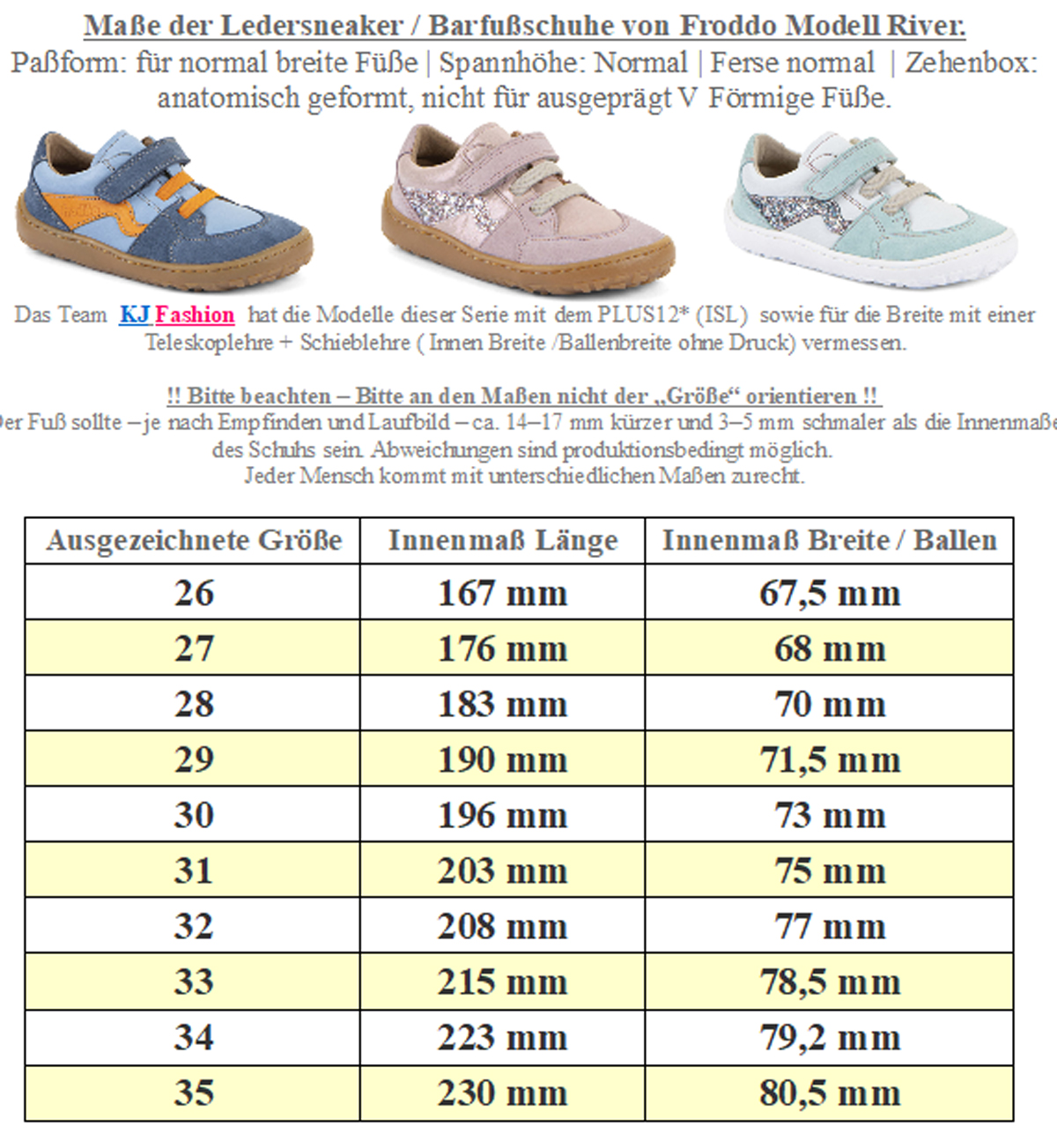Leistenbreite (Stehfläche des Fußes) : für normal breite bis minimal breitere Füße geeignet | Spannhöhe (Weite / Volumen) : Normale Spannhöhe | Zehenbox: anatomisch gerundet nicht für stark dominante Großzehe | Mittelfuß: Normal | Ferse: normal mit sehr gutem Sitz dank Zusatzpolster