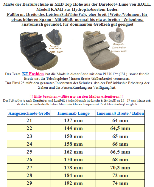 Super weiche und absolut flexible Barfußschuhe - Halbschuhe in minimal höherer Form, aus weichem hydrophobiertem Kalbsleder innen mit Glattleder ausgelegt, Innensohle herausnehmbar, auf dem breiten Leisten ( verglichen mit dem DON und auch D.. 2.0 Modellen von KOEL ) mit Klett anpassbarer Spannhöhe ( Weite) von KOEL Barefoot.