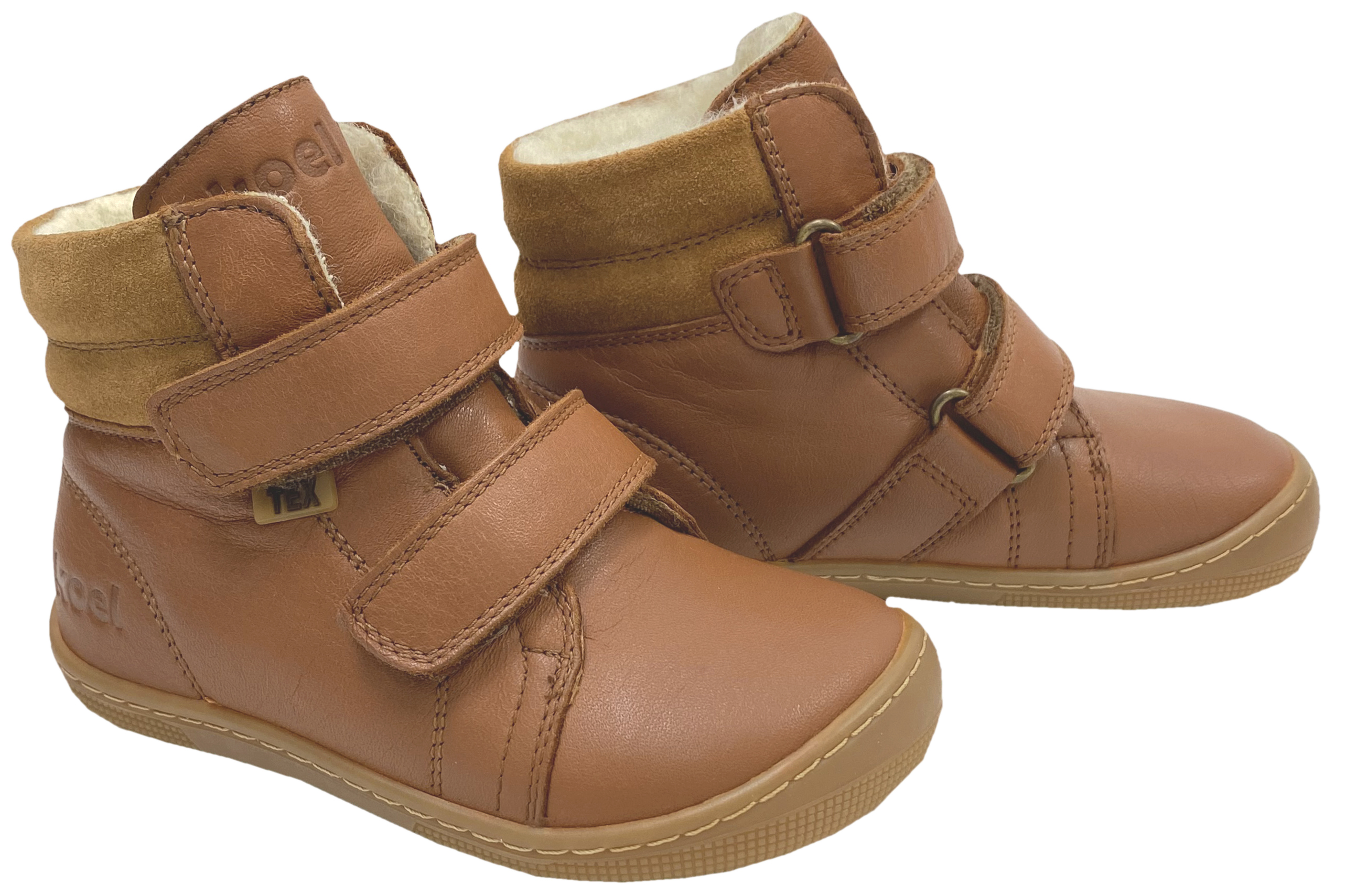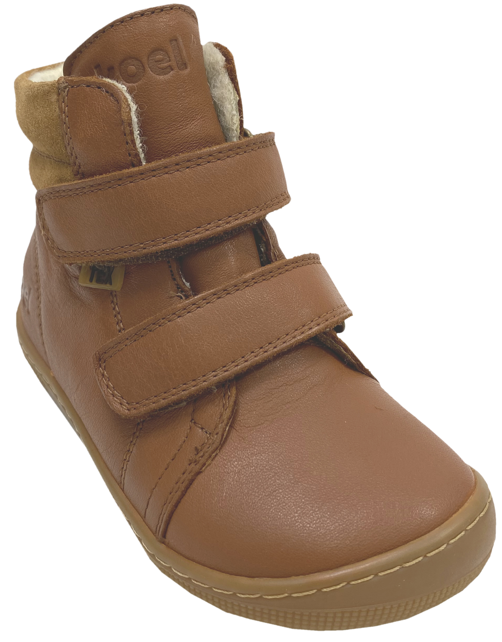 Robuste Barfußschuhe / Winterstiefel mit Tex Membran aus Glattleder mit Doppelklett zu öffnen, innen mit Schurwollfutter ausgelegt, minimal quer und längs flexible Gummigrippsohle auf dem mittelbreiten Leisten ( breite Zehenbox, normale Paßform) von KOEL Barefoot.