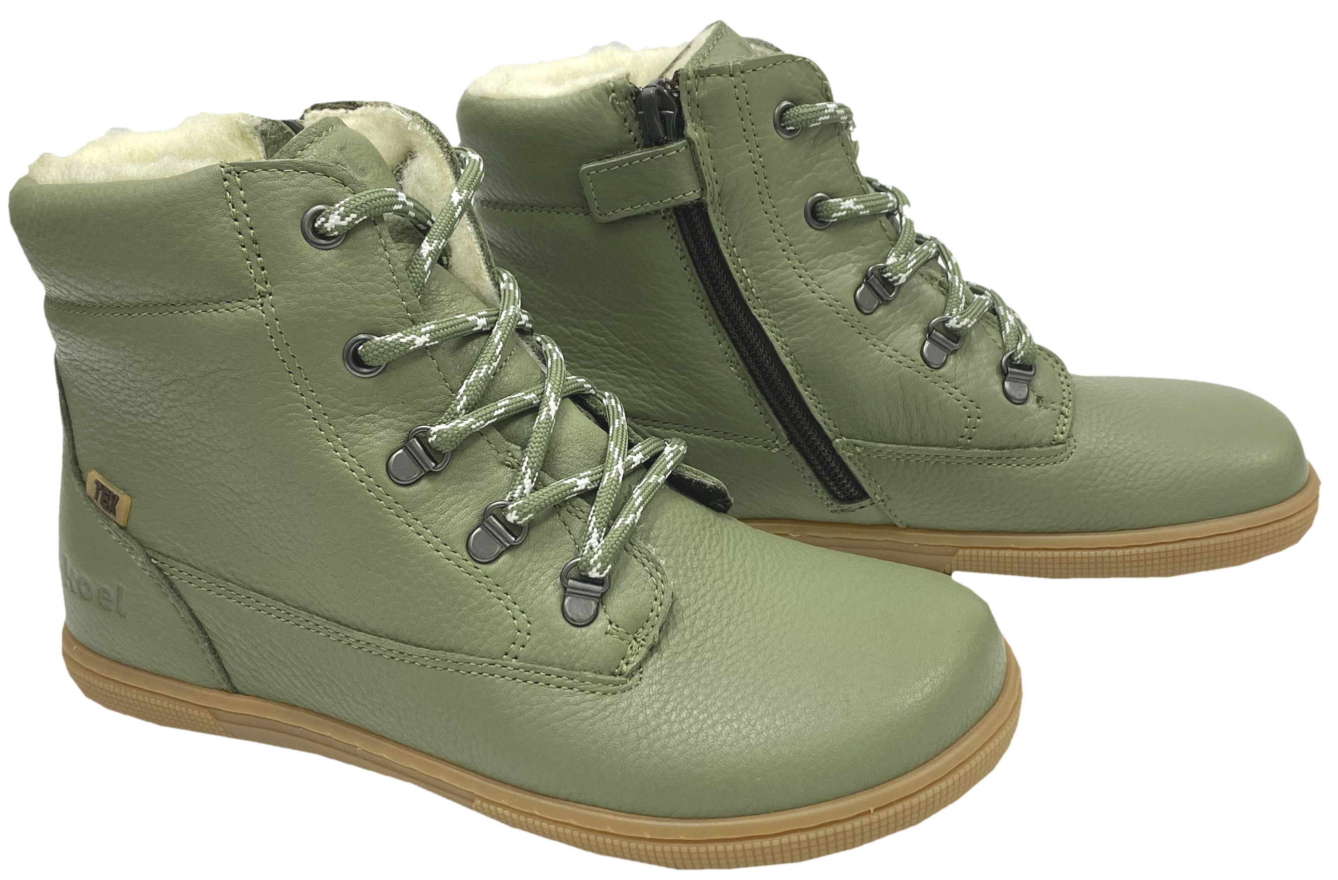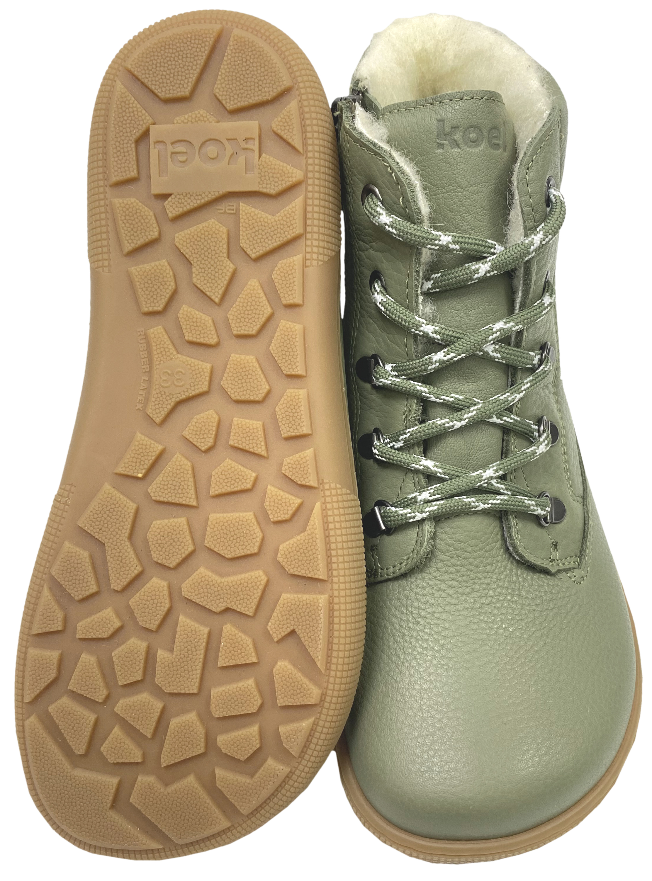Der DRY HIDRO Winterstiefel zum schnüren und seitlich mit Reißverschluß von KOEL Barefoot verbindet lässig coolen Style mit echter Barfuß / Zehenfreiheit – aus genarbtem, derben Vollleder gefertigt, innen mit weichem Schurwollfutter und dazwischen mit einer TEX Membran ausgestattet, auf der flexiblen ( dem Futter entsprechend ), etwas breiteren Minimalsohle BERNARDO für natürlichen Komfort.