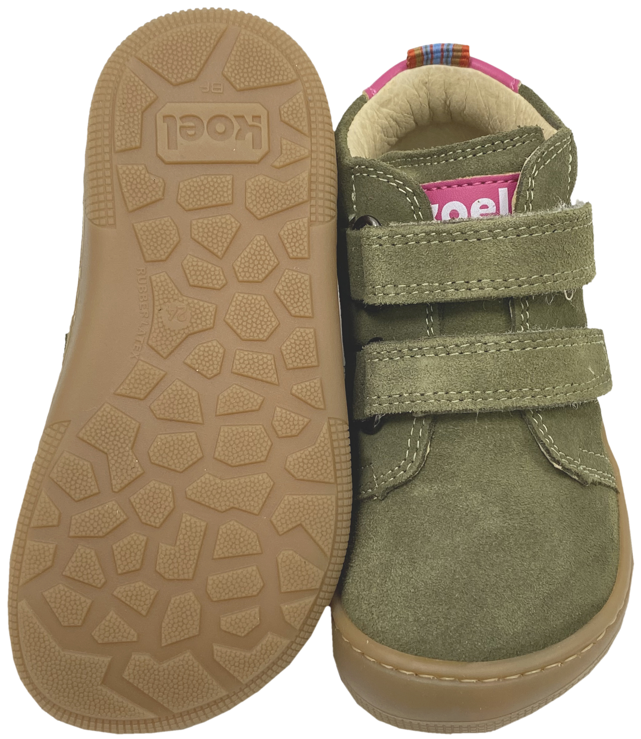 Quer und längs flexible Barfußschuhe / Minimalschuhe in Mid Top Höhe ( optimal bei schmaler Fessel und schmalerer Ferse ) mit Klett aus samtig weichem Suede Leder / umgangssprachlich Wildleder, innen mit Glattleder ausgelegt, Innensohle herausnehmbar, auf der weichen Minimalsohle Linie BERNARDINO von KOEL Barefoot.