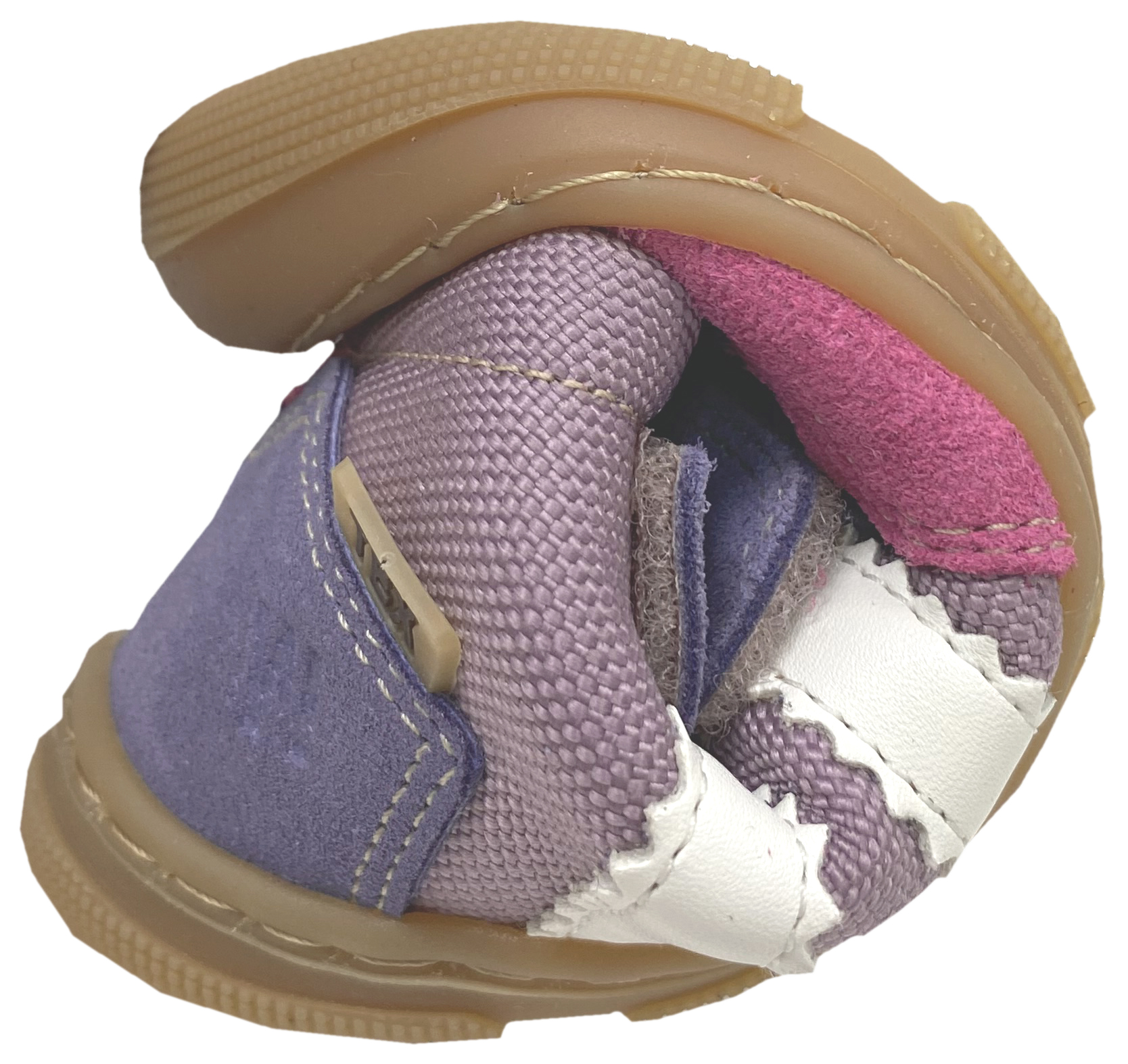 - an der Spitze im Zehenbereich ist die Sohle hochgezogen als Schutzkante