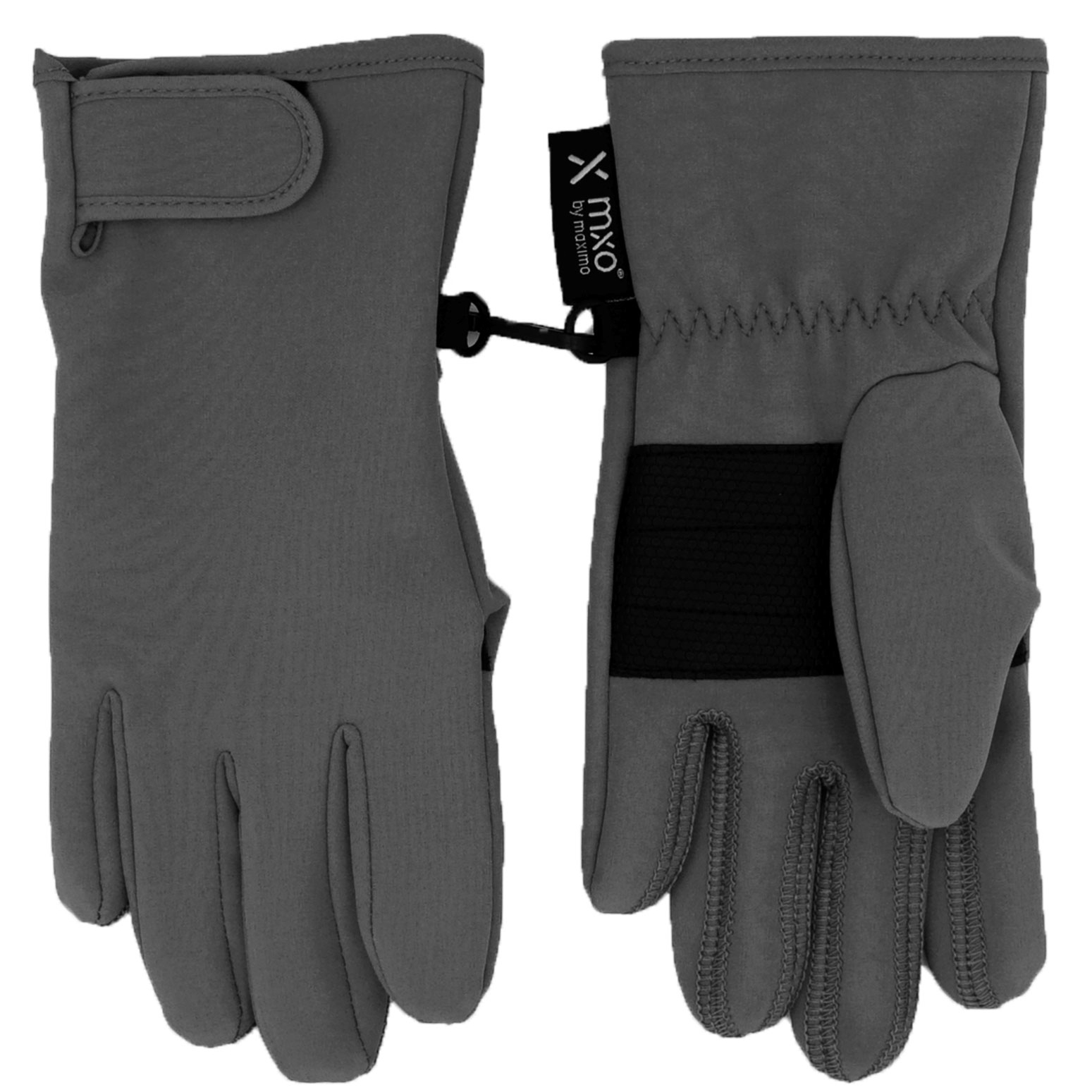 Sportliche, flexible, atmungsaktive und warm haltende Handschuhe / Fingerhandschuhe aus weichem Softshell, innen mit dünnem Fleece ausgelegt in Steingrau für Kids von MAXIMO.