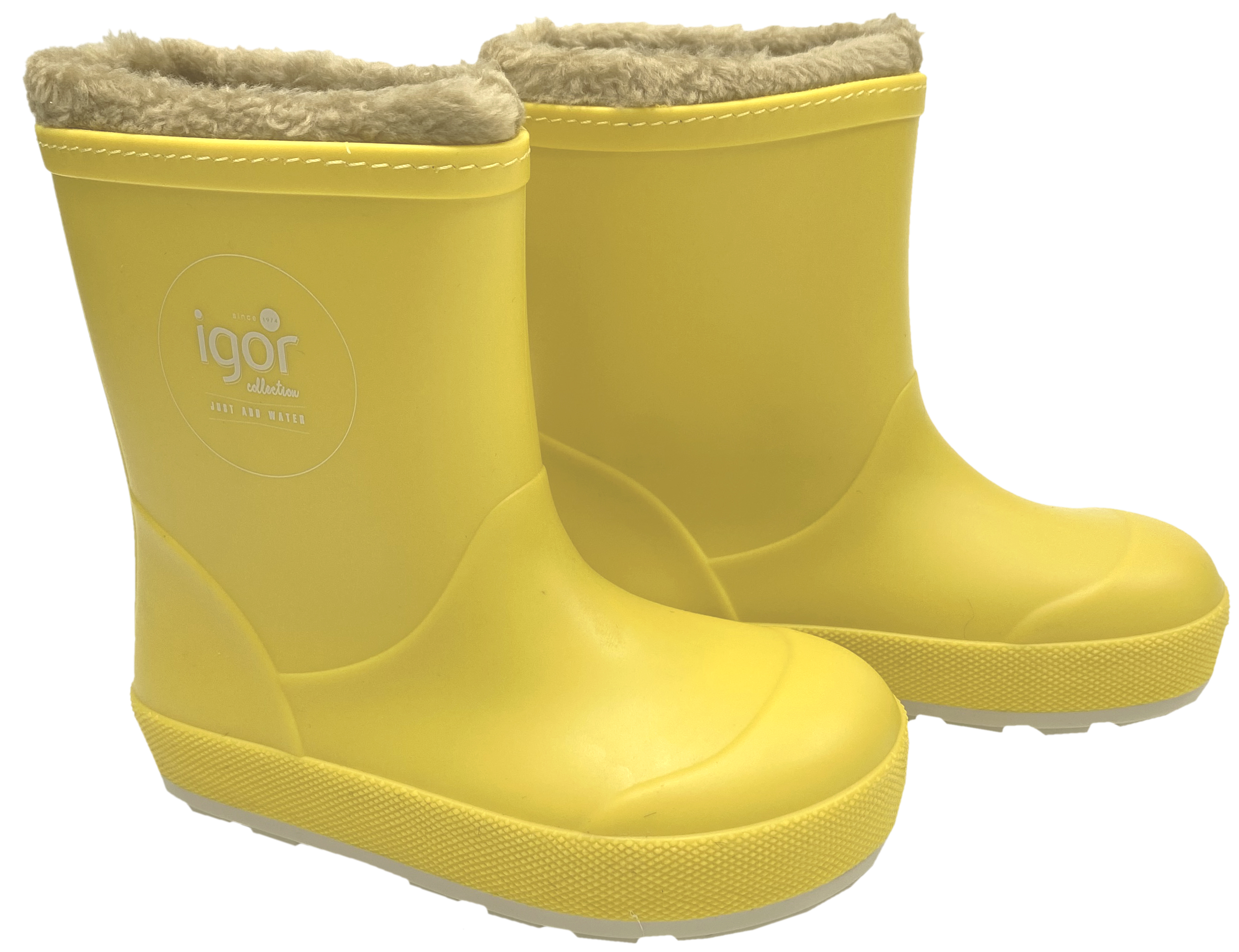 Die IGOR Barfuß-Gummistiefel in mittlerer Schafthöhe überzeugen durch ihr leichtes, robustes PVC hergestellt und geprüft in Spanien, das weiche Teddyplüsch-Fleece-Futter ( nicht zu dick ) und einer super flexiblen Minimalsohle mit Gripp– perfekt zum ausgelassenen Pfützenspringen.