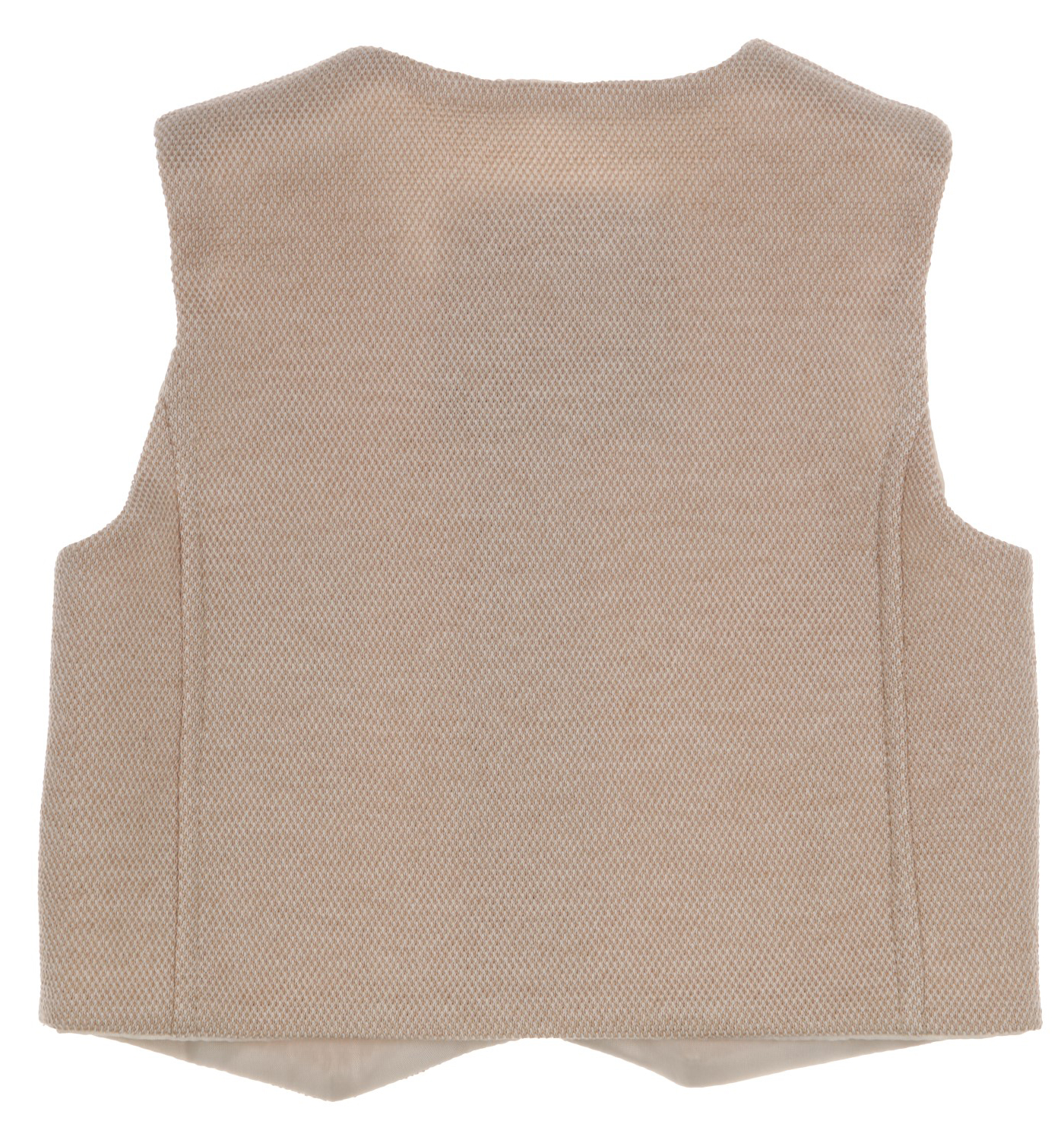 Schicke Weste in hellem Beige mit Struktur gewebt, innen mit glattem Taft ausgelegt, vorn mit schicken Logo geprägten Knöpfen zu öffnen, die perfekte Ergänzung zu den Hemden und Anzughosen für kleine Jungen von dem belgischen Familienunternehmen GYMP.