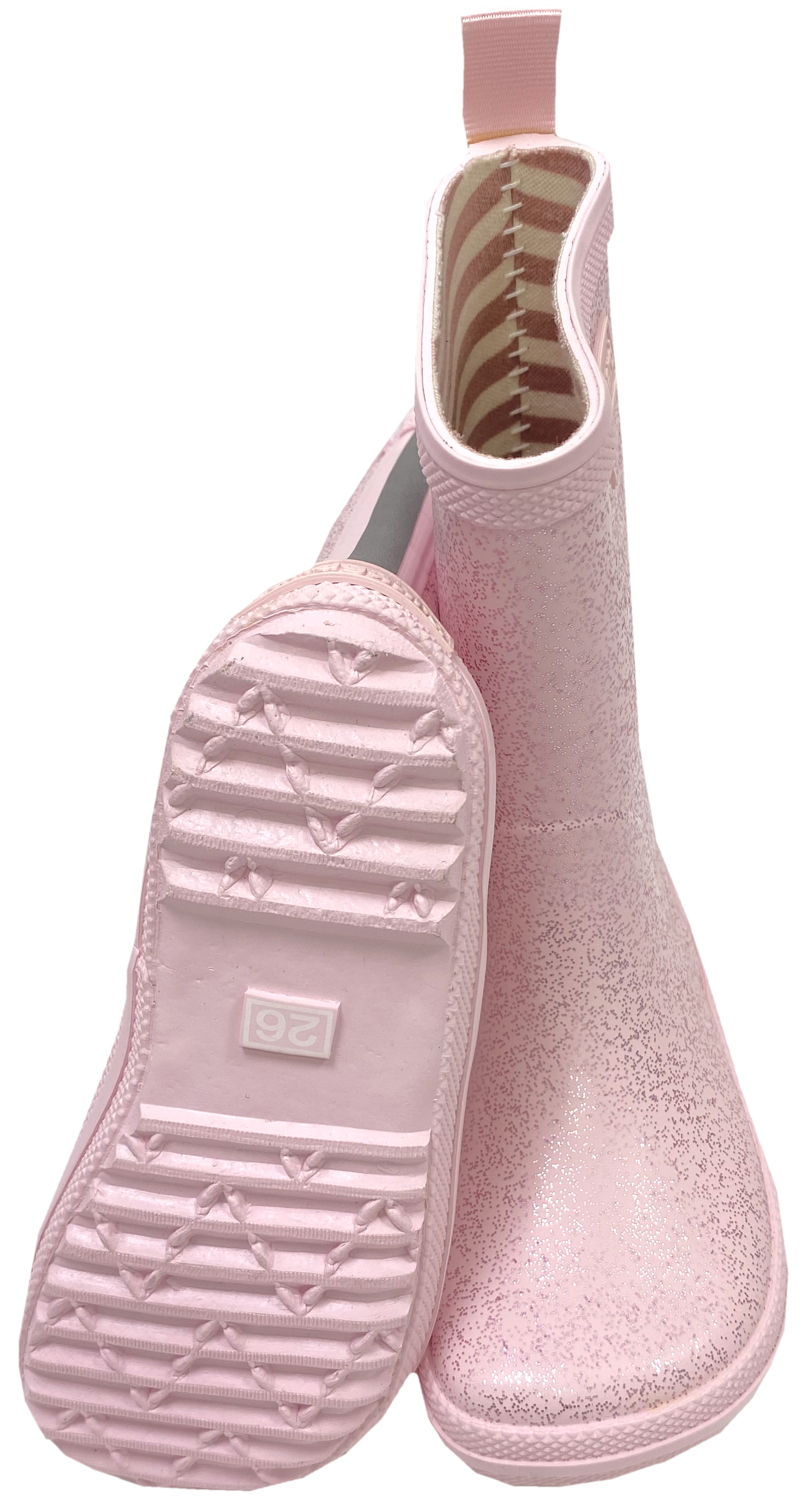 Produktinformationen "Barfußschuhe Gummistiefel anatomische Form, Naturgummi Rose Glitzer Charly High BUNDGAARD"