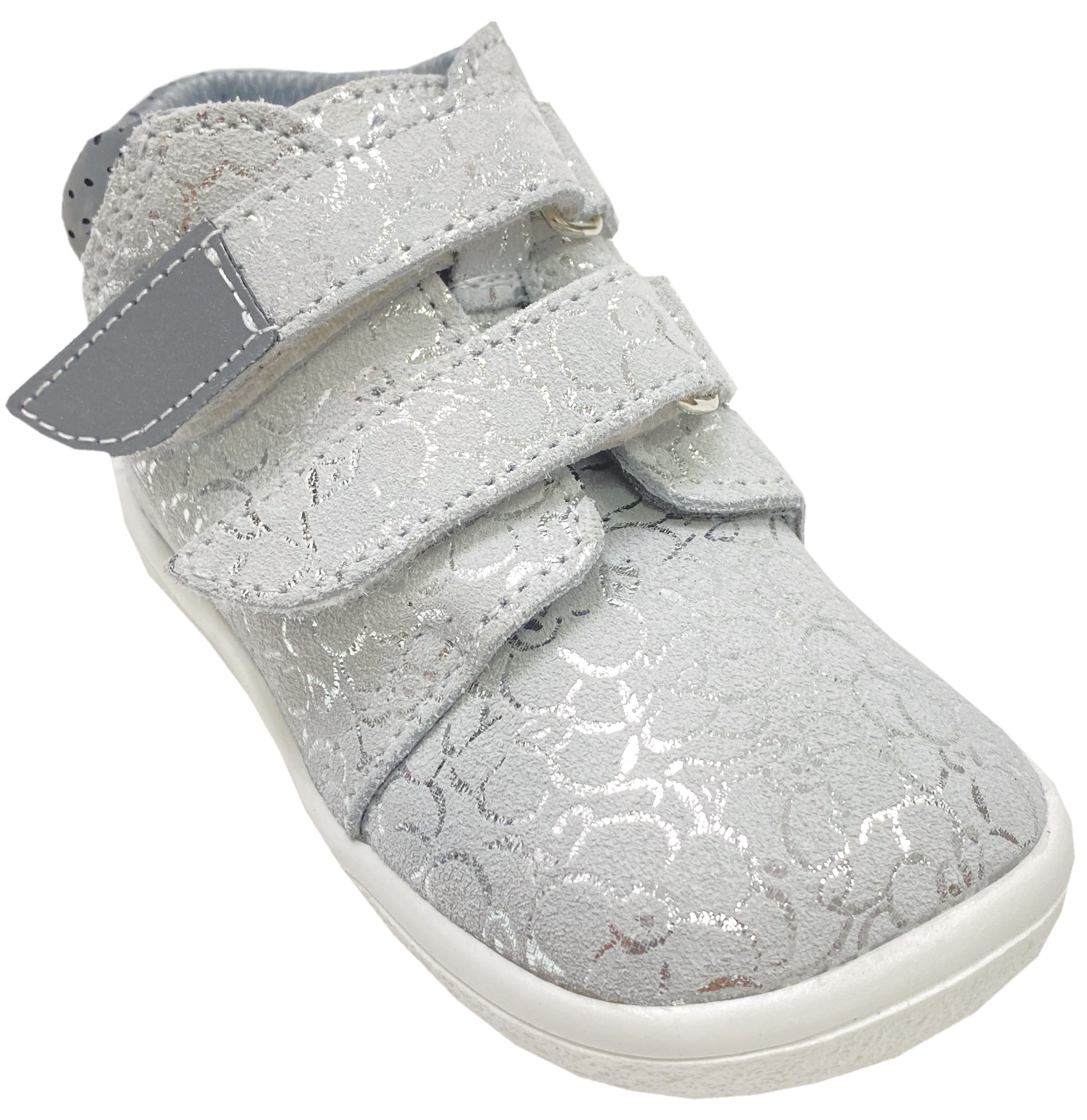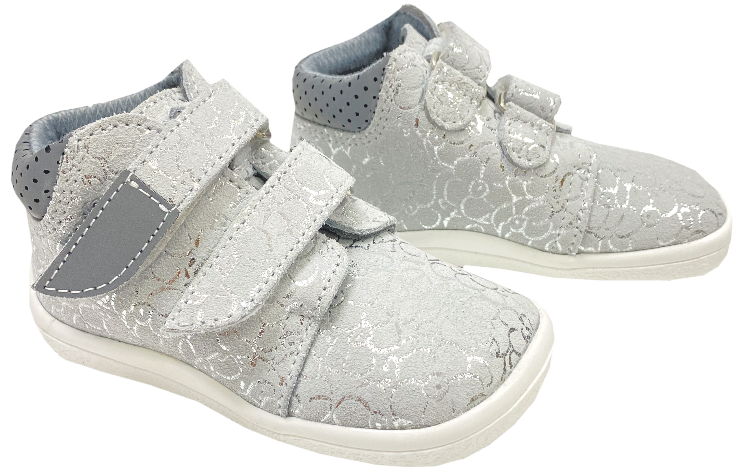 Robuste Barfußschuhe / Halbschuhe aus weichem Nubukleder mit reflektierenden Einsätzen am Klett und der Ferse, mit einer stark wasserabweisenden TEX Membran - TE POR - gearbeitet, V2 Linie mit etwas schmalerer Ferse, für Kids von dem Tschechischem Hersteller BEDA. !!Bitte beachten Sie das Bild mit den Maßen sowie unsere Paßformtips, um unnötiges hin und her senden zu vermeiden - bei Fragen mailen Sie uns einfach vor dem Kauf an - Ihr Team KJ Fashion !! Modell: BF 0001/W/M/TS/2 Bella in Gold GlitterMaterial: Nubukleder bedruckt | Innen: Textil / Mesh Futter, zwischen beiden Lagen TE POR / Tex Membran | Sohle: quer & längs flexible GummisohleWeite (diese bezieht sich auf das Volumen / Spannhöhe ) für normalen bis höheren Spann geeignet / regulierbar | Leisten (Stehfläche Fuß) Mittel bis etwas breiter | Mittelfuß: Normal bis etwas breiter | Ferse: V2 Serie ( etwas schmaler im Vergleich zu der Klassik Linie ) | Zehenbox: gerundet, anatomische Form - Barfußschuhe für Kinderfüße die etwas mehr Volumen benötigen aber dennoch eine normale, bis etwas schmalere Ferse haben - Halbschuhe bis knapp auf den Gelenkknöchel gehend, aus robustem Nubukleder mit weichem, nicht dickem Mesh Futter ausgelegt - mit einer sehr gut wasserabweisenden und atmungsaktiven TEX / TE POR Membran gearbeitet - mit zwei Klettstreifen zu öffnen, am Ende sowie der Ferse mit reflektierendem Einsatz gearbeitet - herausnehmbare Innensohle mit dünnem Leder bezogen - robuste sehr gut quer und längs flexible Sohle ohne Erhöhungen / keine Mittelfußpolster oder versteckte Sprengungen, mit etwas Profil Ein prima Halbschuh / Barfußschuh für den Übergang mit TEX Membran von BEDA für Kinder. !! Bitte beachten - für extreme Nutzung durch Bobby Car / Laufrad etc bitte geeeignete Schutzkappen über die Schuhe ziehen - da diese dafür nicht ausgelegt sind !!