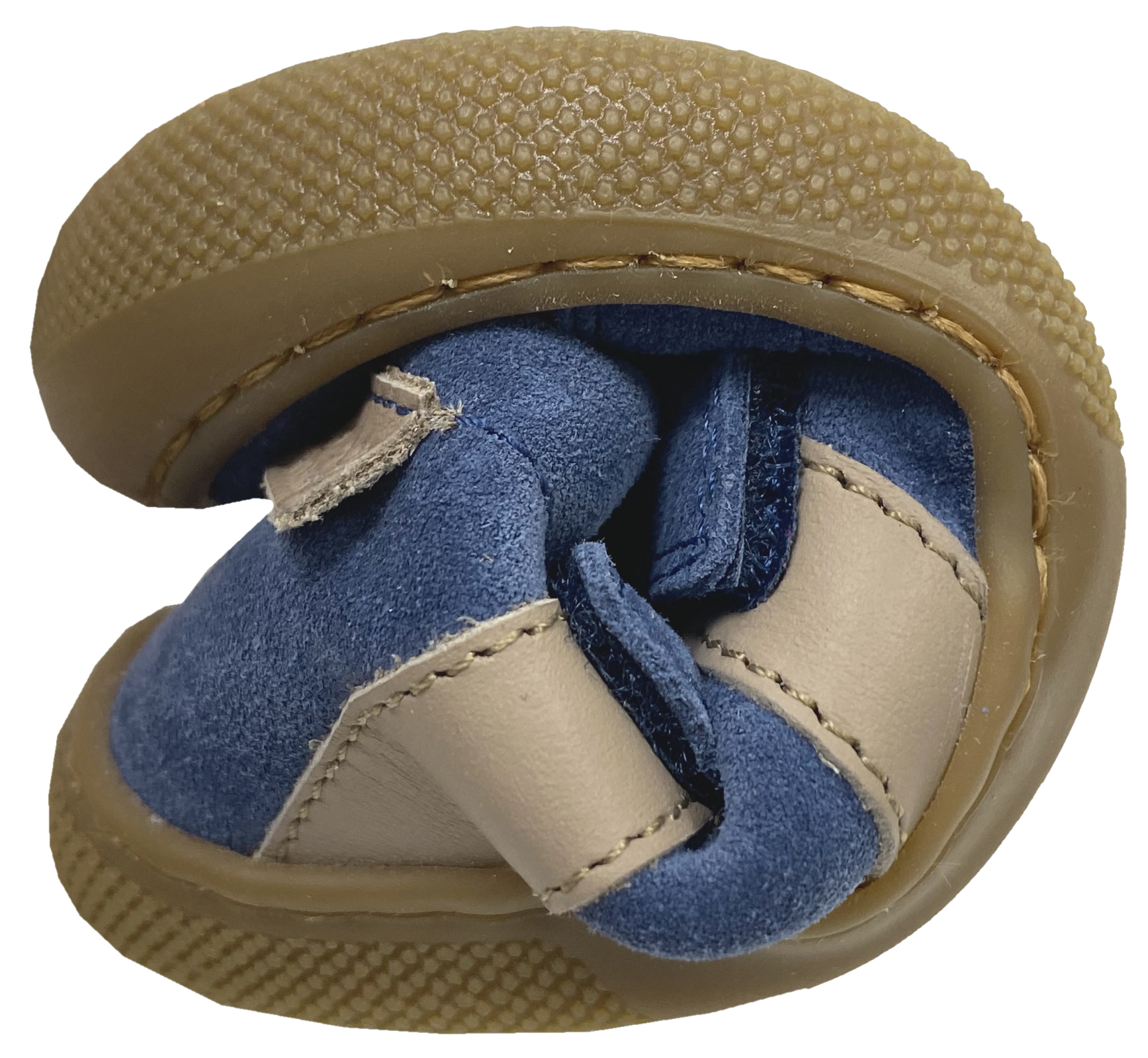 Produktinformationen "Barfußschuhe Suede Leder mit Glattleder Str. & Klett Modell SABBY in Azure / Taupe v. NATURINO"