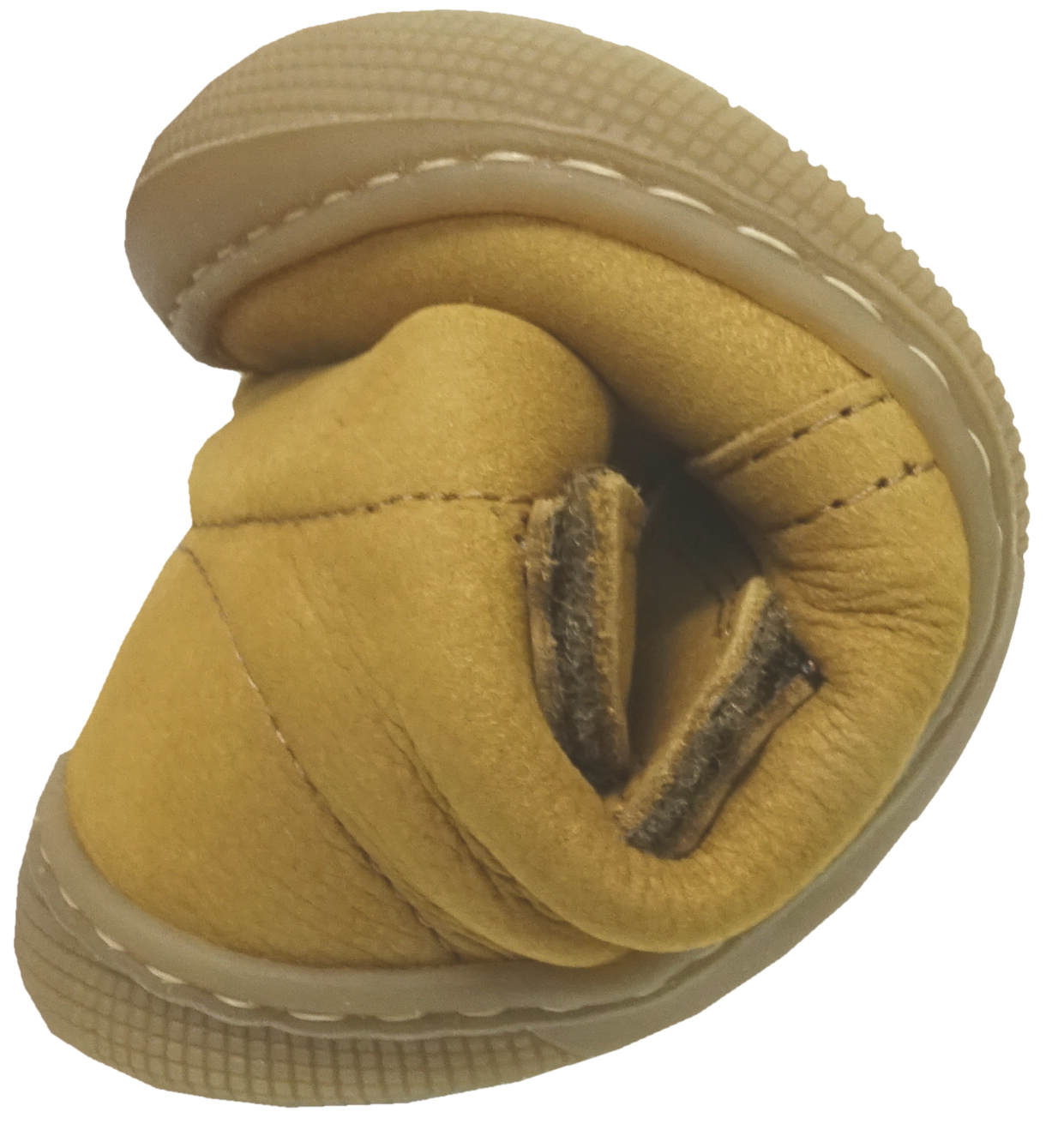 - an der Spitze im Zehenbereich ist die Sohle etwas hochgezogen als Schutzkante