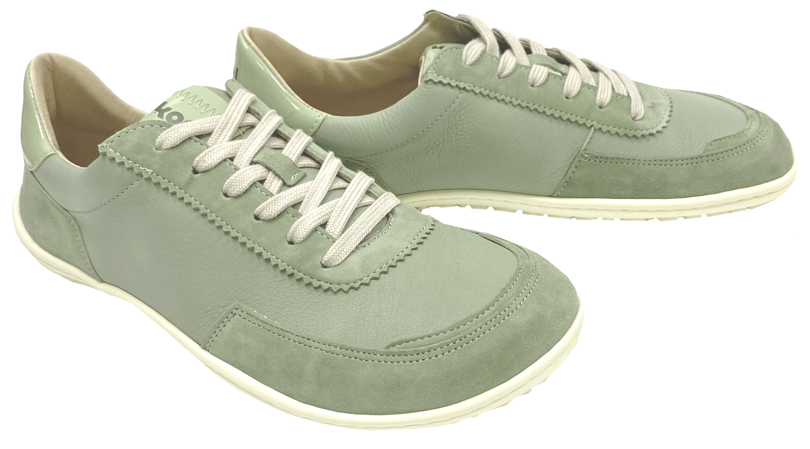 Sportlich schicke Sneaker, absolut flexible Barfußschuhe aus weichem Leder zum schnüren innen mit Chrome frei gegerbtem Leder ausgelegt, Innensohle ohne Erhöhungen mit Leder bezogen und fest verklebt, auf der super flexiblen Grip Sohle von KOEL Barefoot.