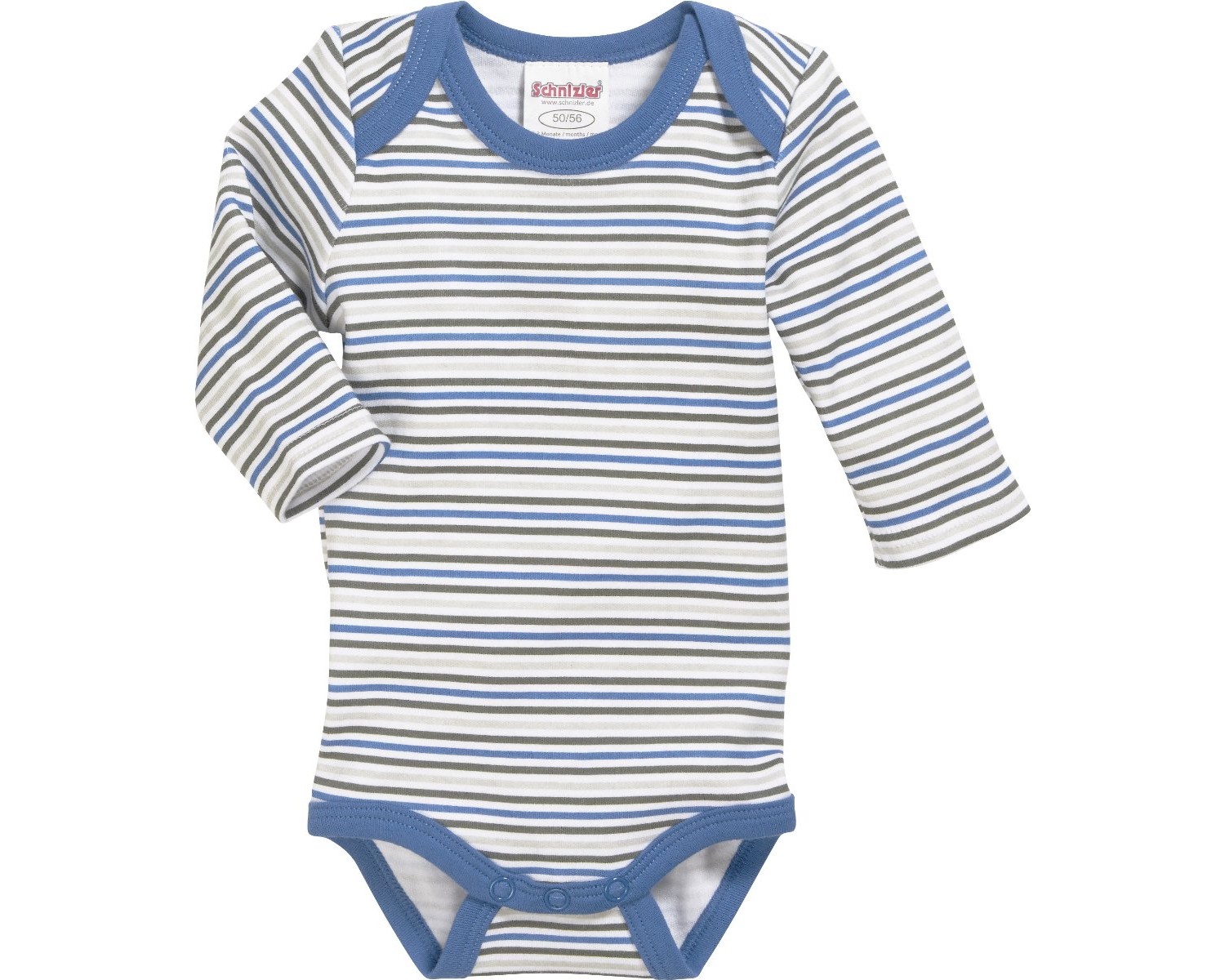Bodys Langarm 3 er Pack 100% BW von SCHNIZLER Modell: Bagger in Weiß Blau 809303