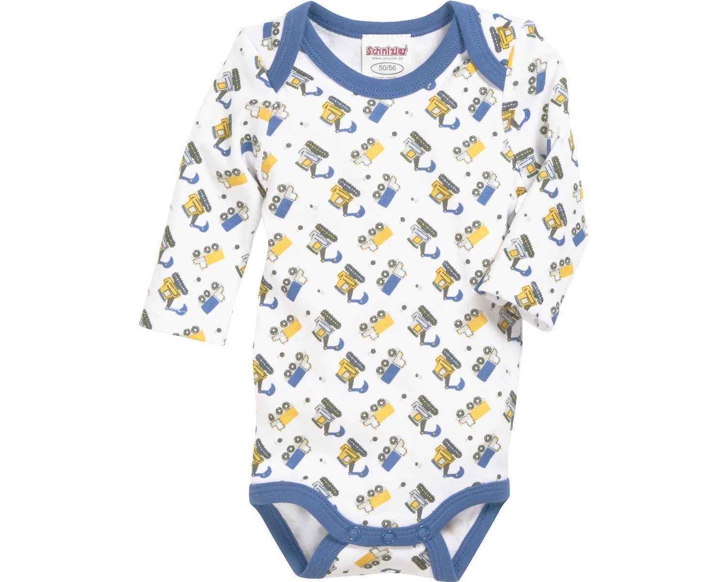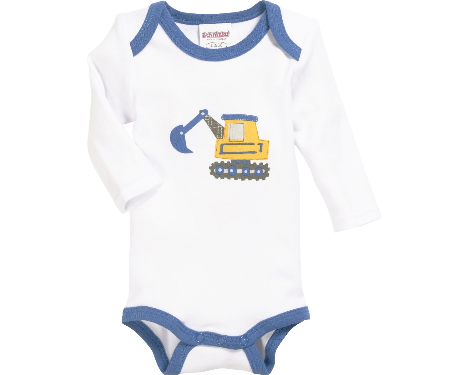 Produktinformationen "Bodys Langarm 3 er Pack 100% BW von SCHNIZLER Modell: Bagger in Weiß Blau 809303"
