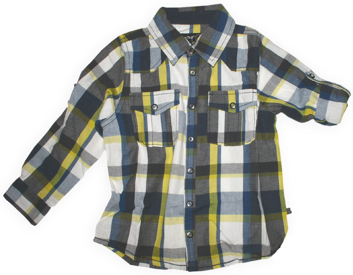 Sportlich schickes Hemd im Karodesign in Grau, Weiß, Blau und Gelb Tönen mit variierbaren Ärmeln im trendigen Karolook von dem dänischen Kindermode Hersteller MINYMO.