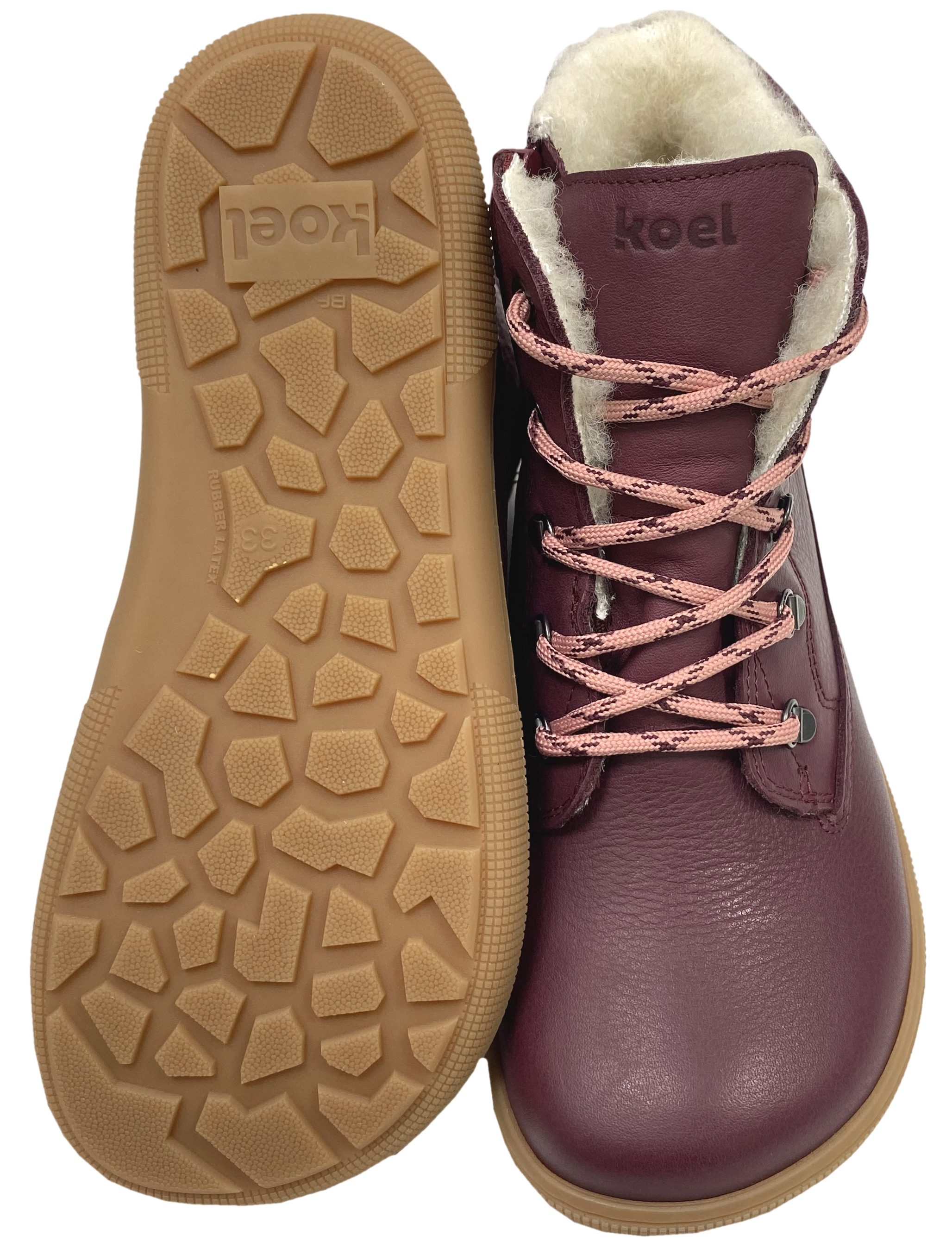 Derber Vollleder Winterstiefel mit Schurwollfutter von KOEL Barefoot *DRY Hidro* Bordo Rot 08T021.23