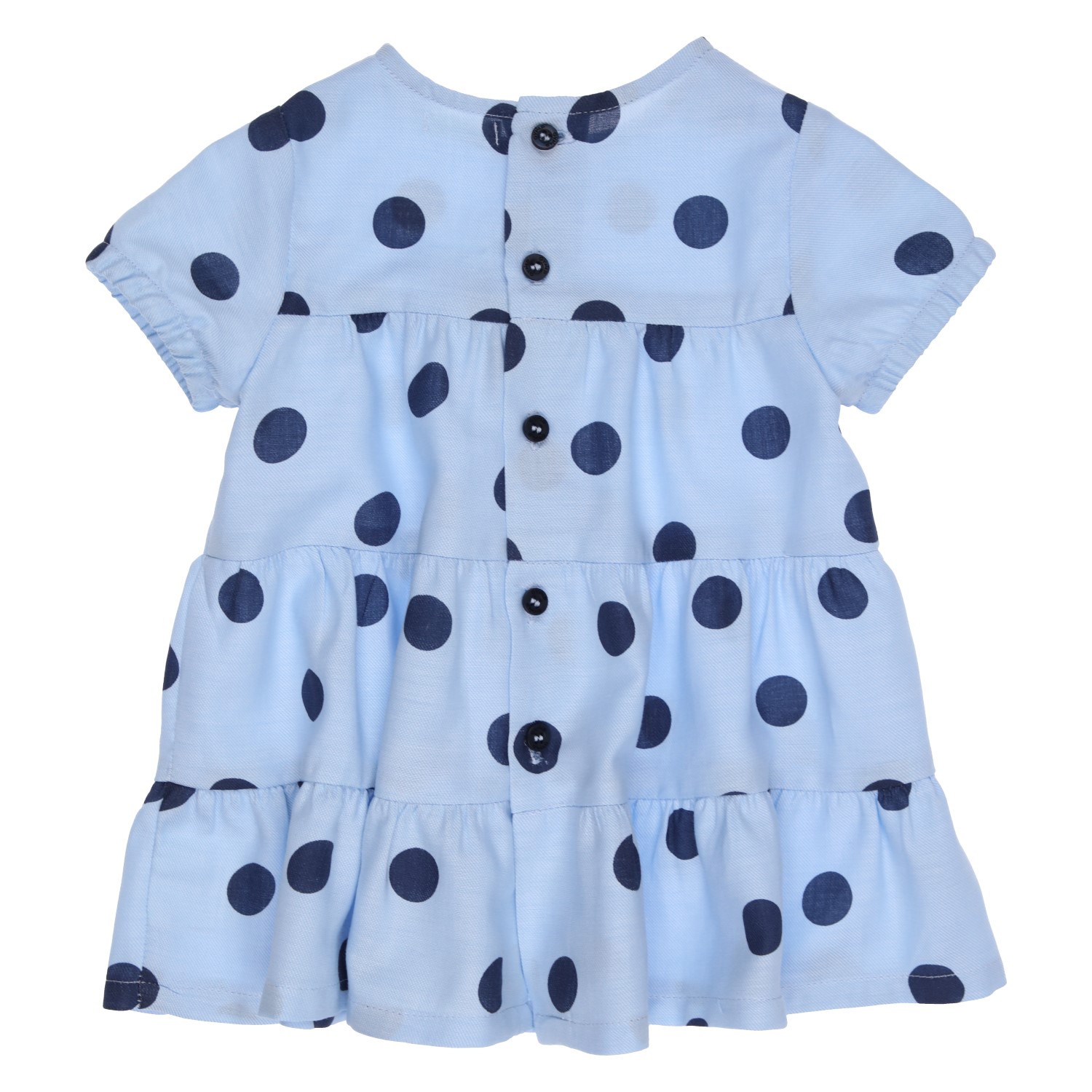 Produktinformationen "Festliches Blusenkleid aus BW in Hellblau mit Punkten in Marine & Tüllschleife von GYMP 470-1414"