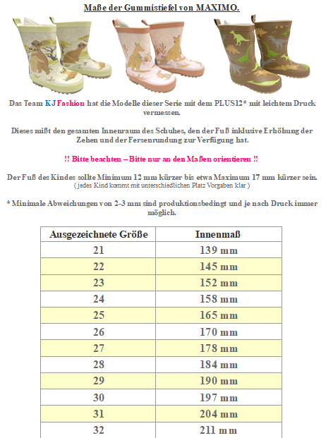 Paßform: Normale Breite | Spannhöhe (Weite) : Normal | Ferse: Normal | Weite Schaft : Maximo Gummistiefel fallen normal bis minimal weiter in der Schaftweite aus