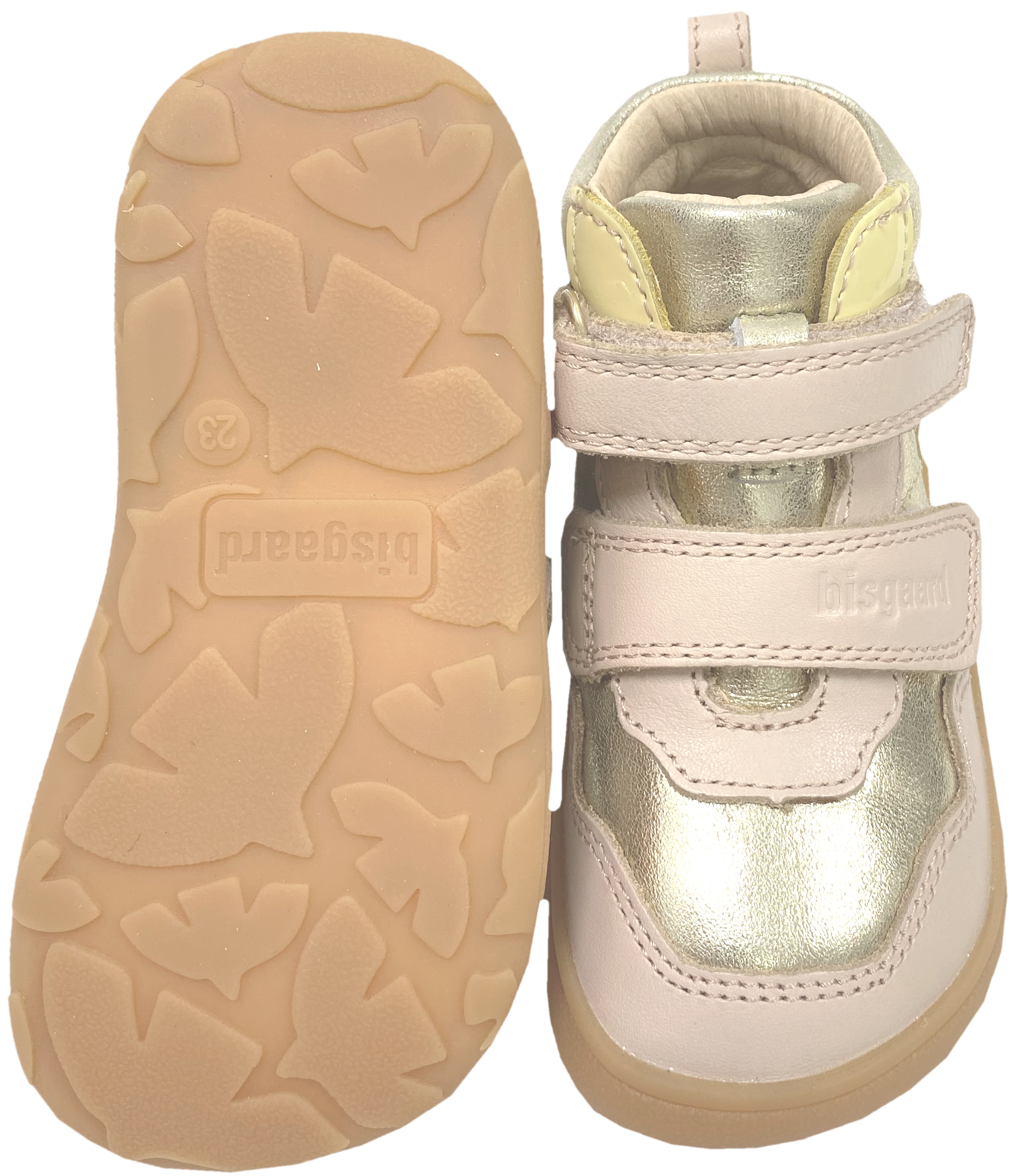 Produktinformationen "Halbhoher Barfußschuh aus weichem Leder von BISGAARD Barefoot * BECKY * in Nude Rosa / Gold"