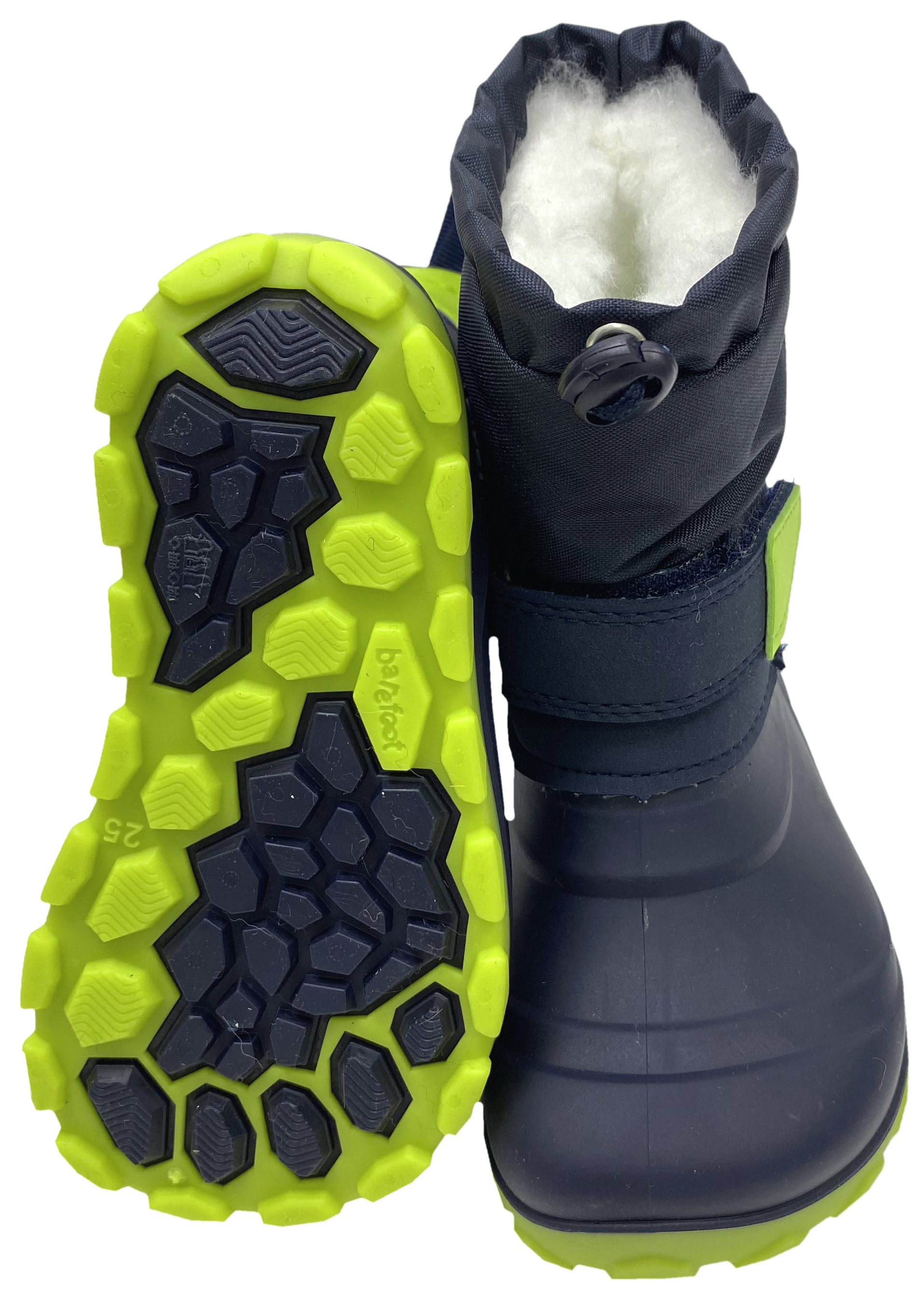 Die robusten und ultraleichten und richtig kuschelig dick gefütterte Winter-Barfußstiefel / Wintergummistiefel von Lurchi Barefoot vereinen Wärme, Flexibilität und Schutz – perfekt für aktive Kinderfüße in der kalten Jahreszeit. > Bitte beachten Sie die im Bild angegebenen Maße, um unnötige Rücksendungen zu vermeiden. Bei Fragen wenden Sie sich gerne vor dem Kauf per E-Mail an uns. Ihr Team KJ Fashion! < Modell: Jan Barefoot 15L6003001 OLIVEMaterial: Mikrofaser & Synthetisch | Innenfutter: Synthetik, Kuschelfell | Innensohle fest vernäht: Schurwolle / Synthetik Mix | Sohle + unterer Schuh: TPE (Thermoplastische Elastomere) Vor dem ersten Tragen und nach dem der Schuh nass war immer imprägnieren – Schuh immer gut durchtrocknen lassem!Weite (diese bezieht sich auf das Volumen / Spannhöhe ) normal bis minimal höher  |  Leisten Breite (Stehfläche Fuß) normal bis etwas breitere Füße | Mittelfuß: normal | Ferse: normal | Zehenbox: gerundet, anatomische Form - Super leichte, robuste Winterstiefel / Barfußschuhe für Kinder - Flexible, sehr griffige Außensohle mit tollem Profil - Innensohle fest vernäht aus wärmendem Schurwollmix - Innenfutter aus dickem, kuscheligem Kunstfell für extra Wärme - Außenmaterial des Oberschuhes leicht wasserabweisend, unterer Schuh aus TPE wasserfest, extrem biegsam & robust - Breite, anatomisch geformte Zehenbox für viel Bewegungsfreiheit - Praktische Verschlüsse: Klett über dem Gummieinsatz + flexibler Schaft mit Kordelstopper zur Regulierung an Wadenhöhe Ein optimaler Stiefel für kalte Tage für Kids die richtig aktiv sind und einen guten Gripp benötigen. Wärmend, super flexibel, schützt zuverlässig vor Kälte von LURCHI Barefoot. !! Hinweis zum trocknen !! Für warme Kinderfüße empfehlen sich locker sitzende Woll- oder Funktionssocken. Sie nehmen Feuchtigkeit langsamer auf bzw. leiten sie ab und verhindern so ein schnelles Auskühlen – besser als Baumwollsocken. -> Hier geht es zu unseren Woll- und Funktionssocken