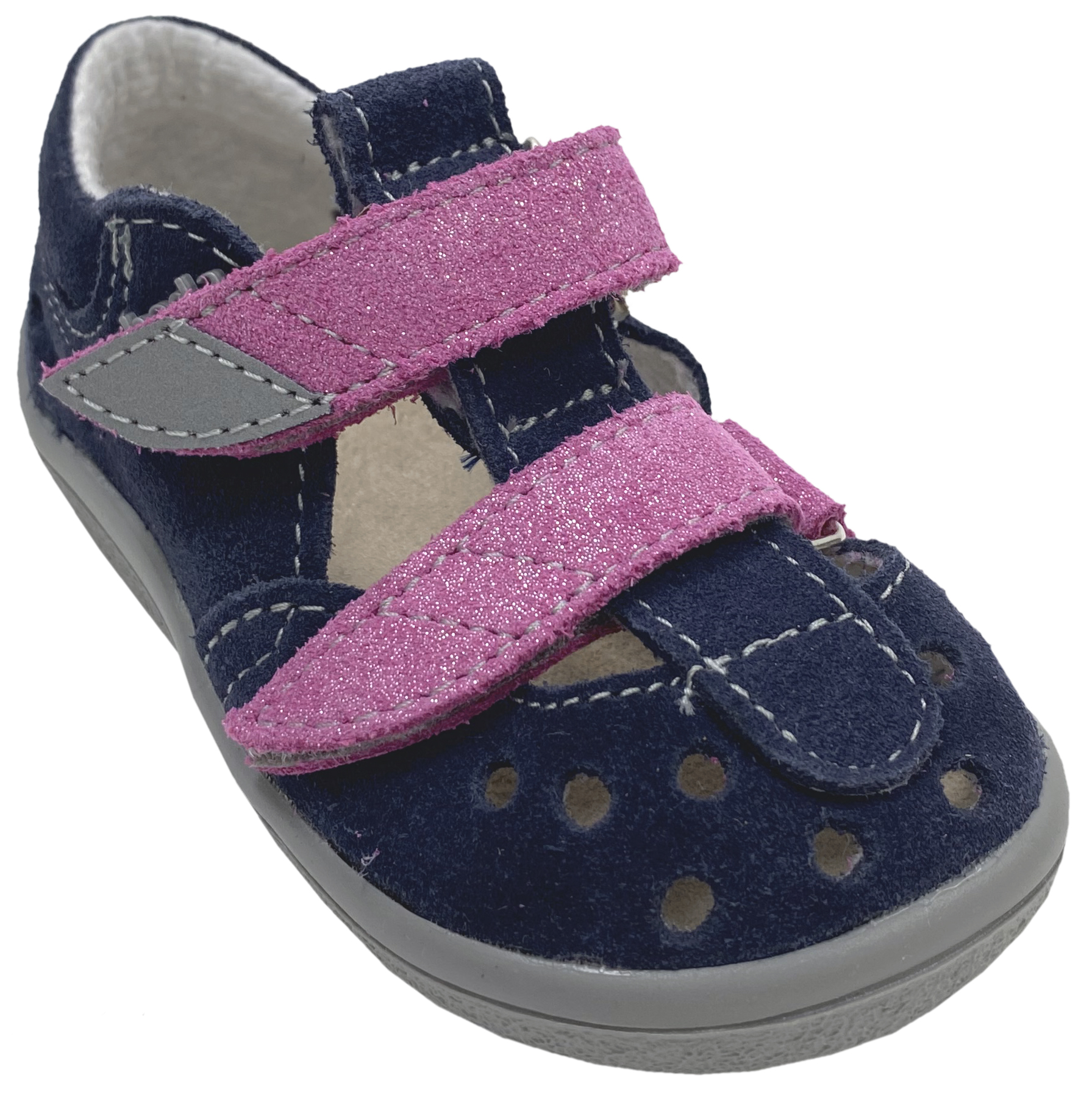 Halbsandalen / Minimalschuhe, Doppelklett, Navy Rosa Glitzer * OCEAN SHINE * von BEDA
