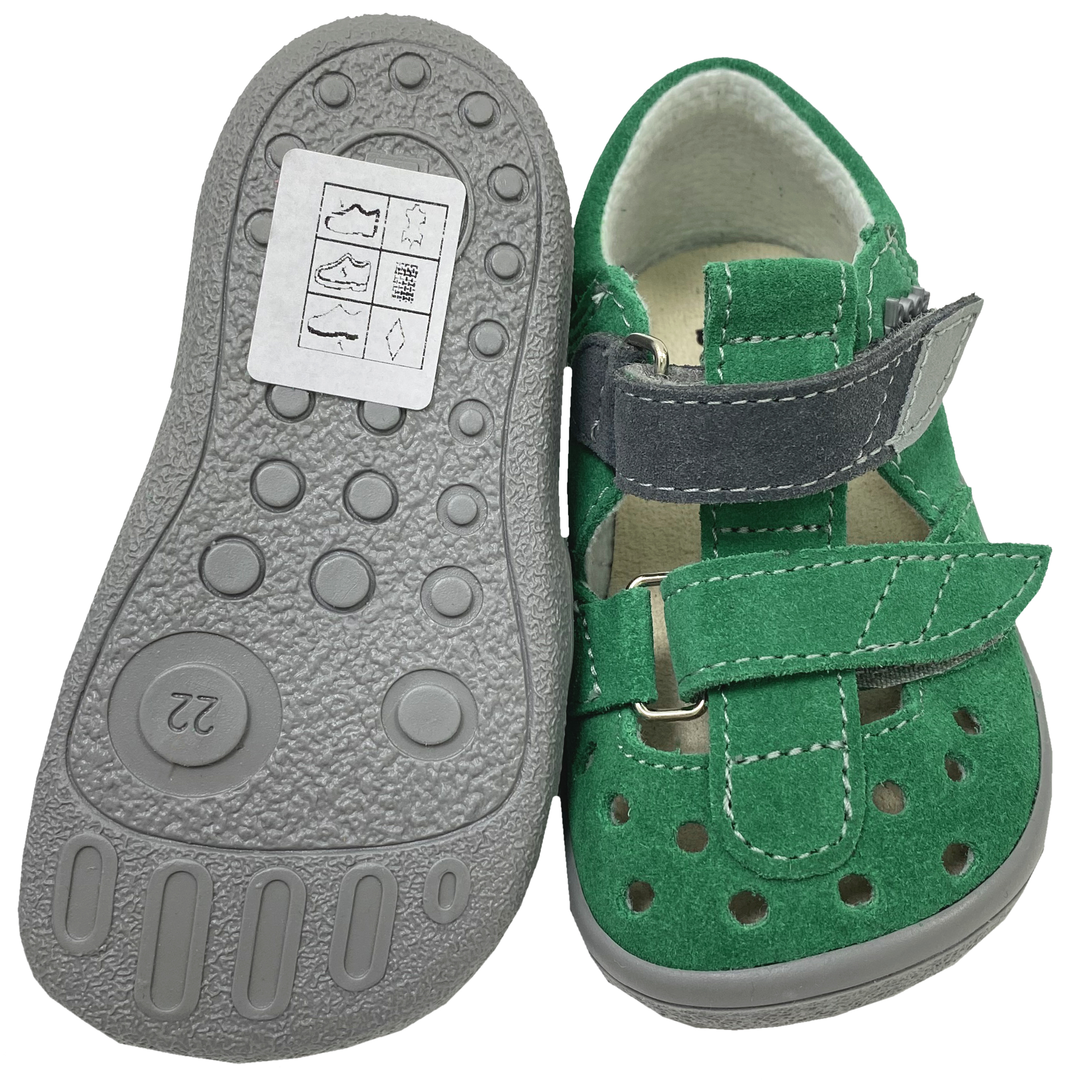 Halbsandalen / Minimalschuhe mit Doppelklett in Grün / Grau Modell SAM von BEDA