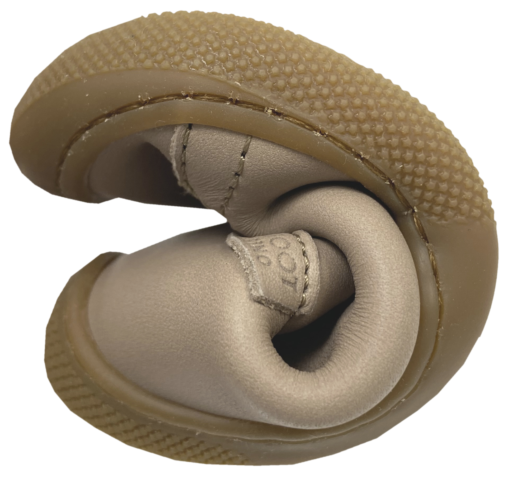 - an der Spitze im Zehenbereich ist die Sohle etwas hochgezogen als Schutzkante