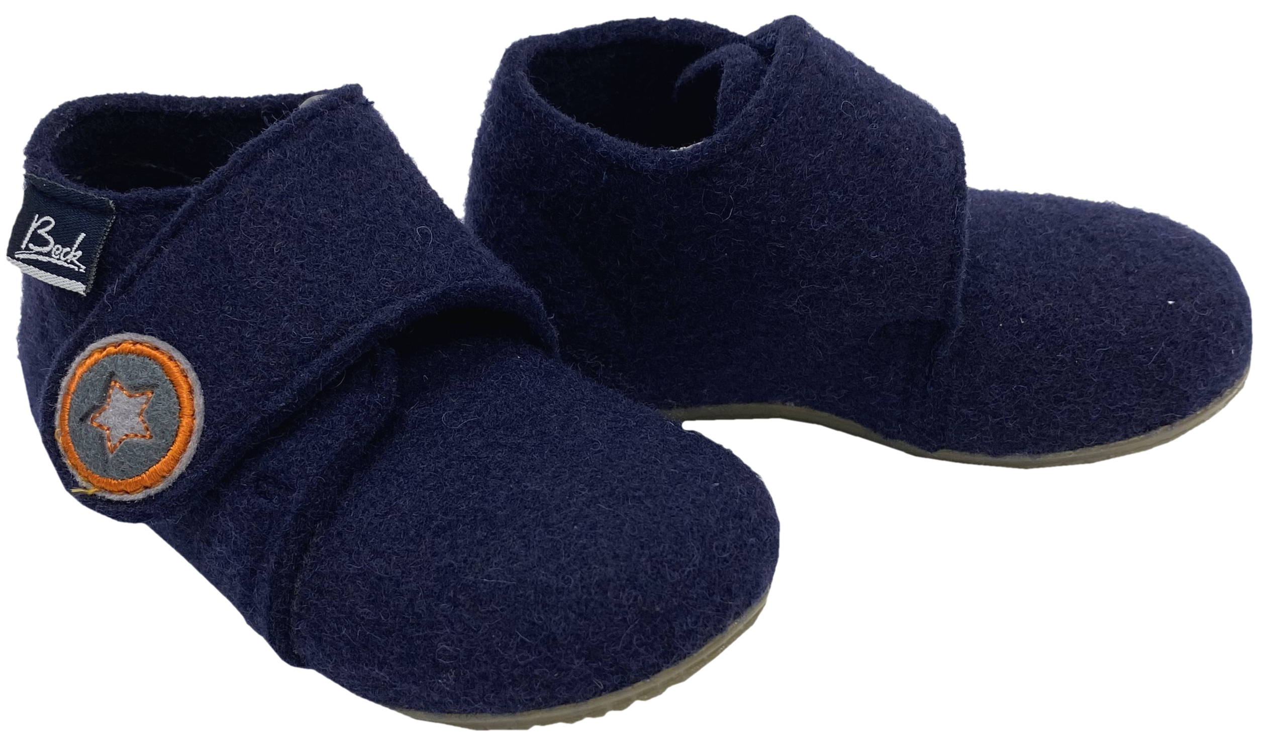 Hausschuhe in Marine aus Wolle mit Klett, für schmale Füße v. BECK * Snuglies * (Kompromiss)