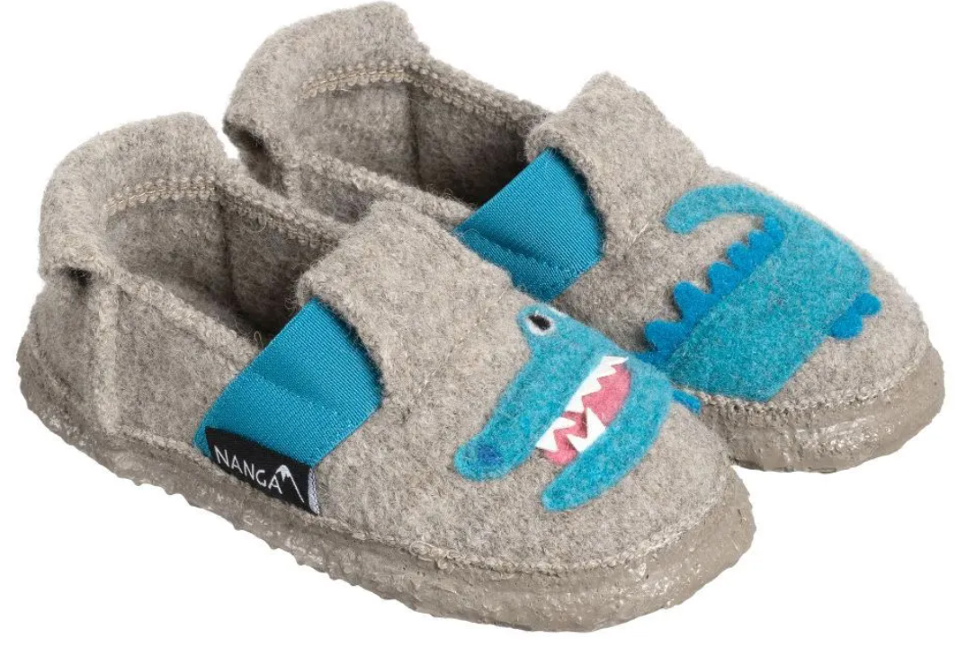 Produktinformationen "Hausschuhe zum schlüpfen aus Wolle & Naturgummi Sohle Funny Croco in Beige /Grau von NANGA"