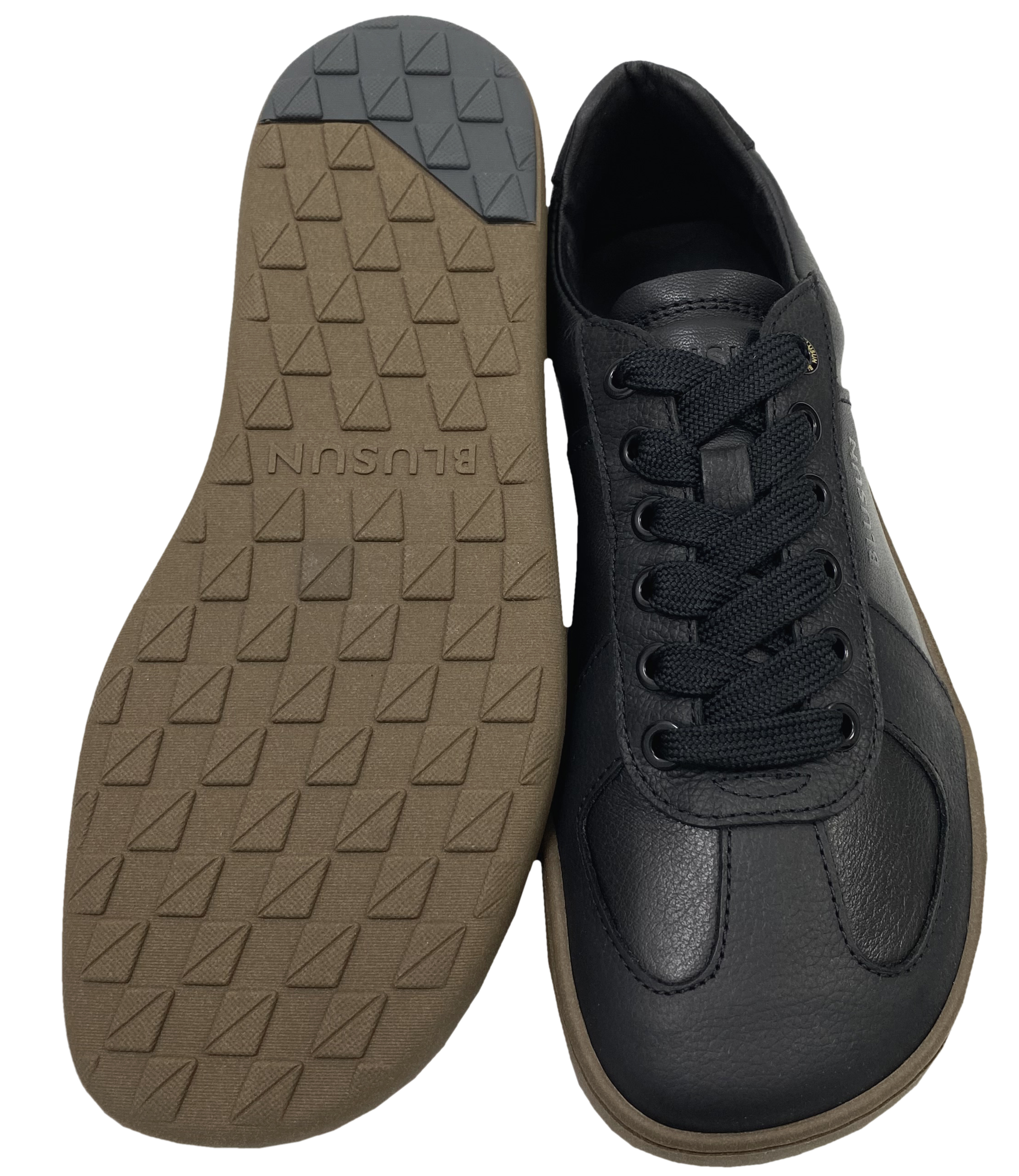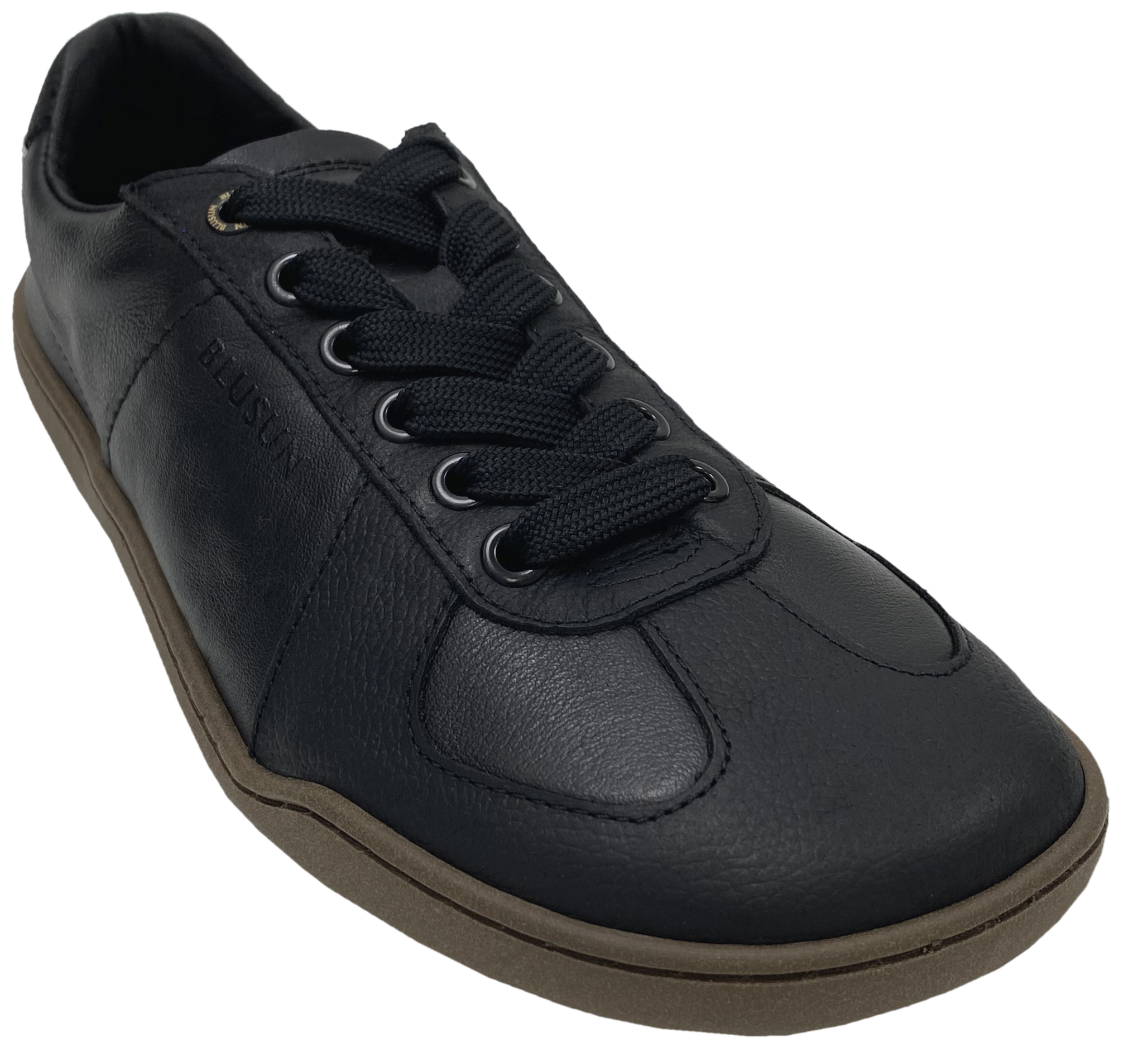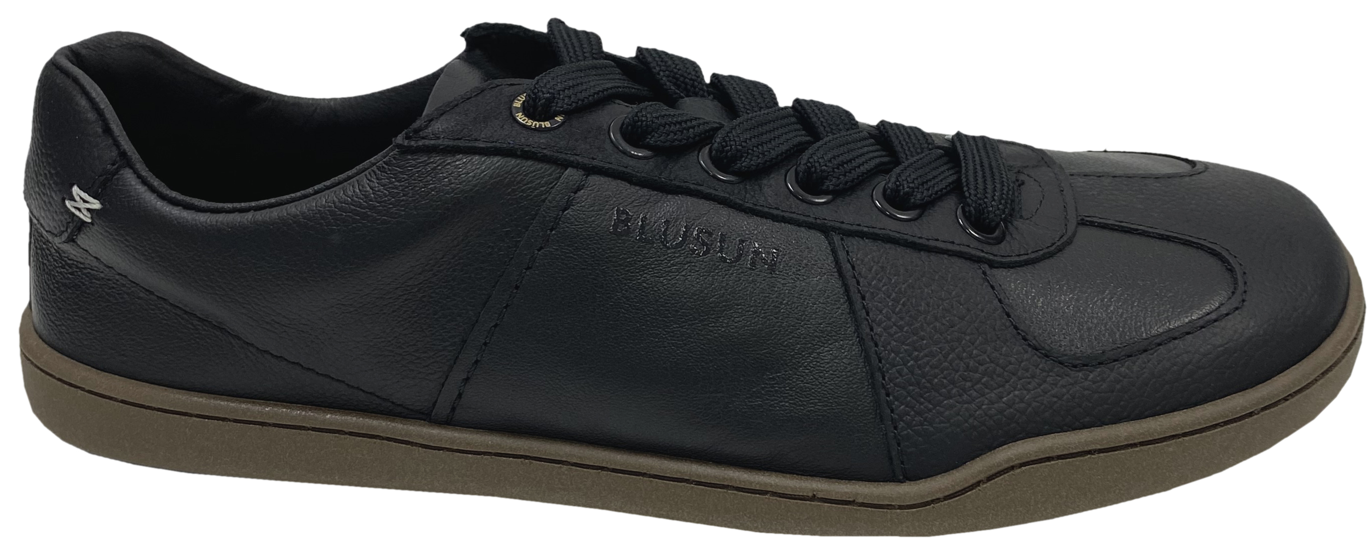 Lässiger Sneaker aus weichem Leder, mit super angenehm zu tragendem, atmungsaktivem Innenfutter ausgelegt, extrem flexibler und leichter TPU Sohle, diese produziert in Deutschland, breiten wertigen Senkeln welche durch die derben Logo geprägten Ösen problemlos zu schnüren sind - stylische Barfußschuhe für Erwachsene von BLUSUN.