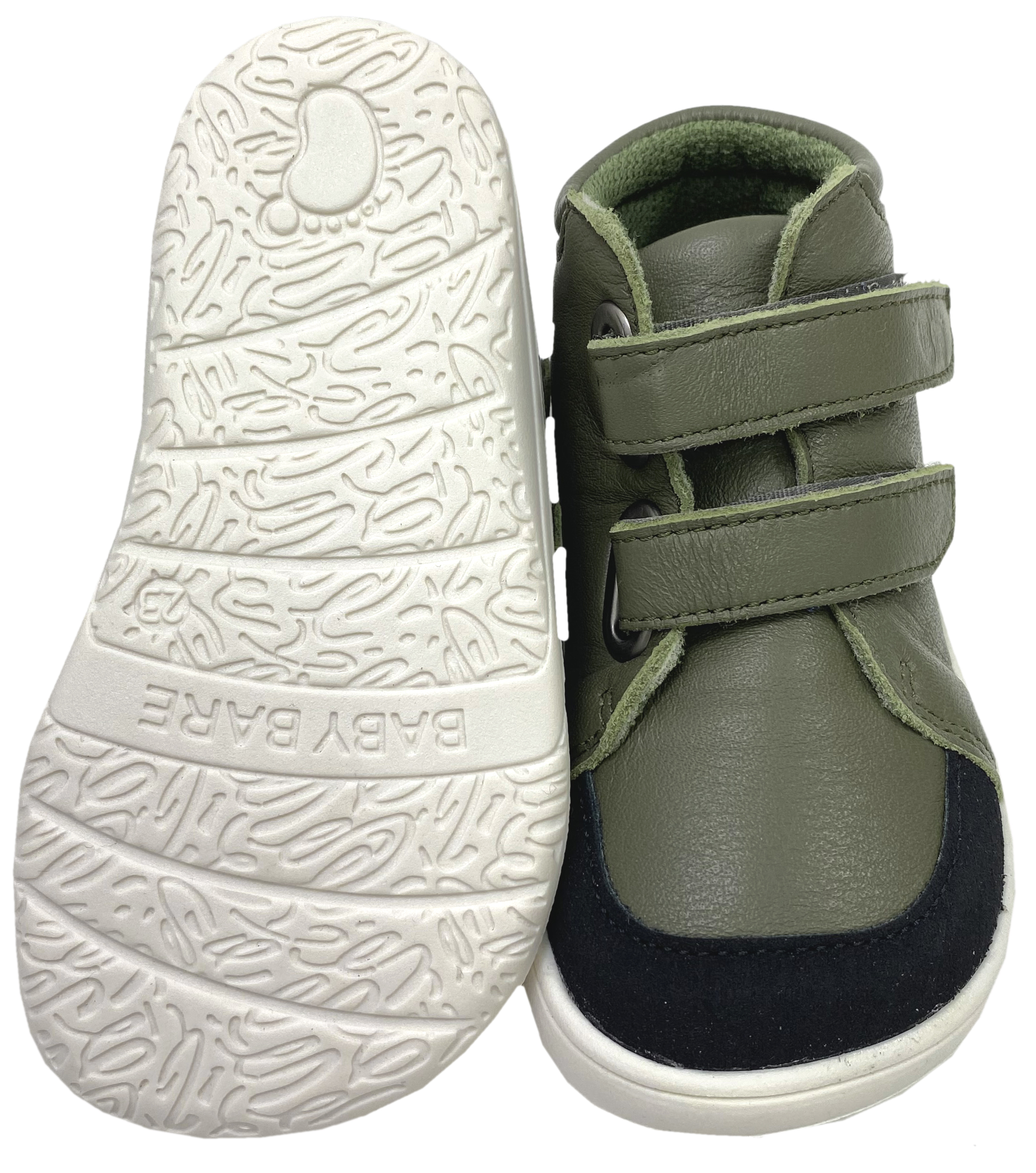 Produktinformationen "Leder Schuhe + TEX Membran / Barfußschuhe Mid Top Höhe v. BABY BARE Febo Fall Bosco / Oliv Grün"