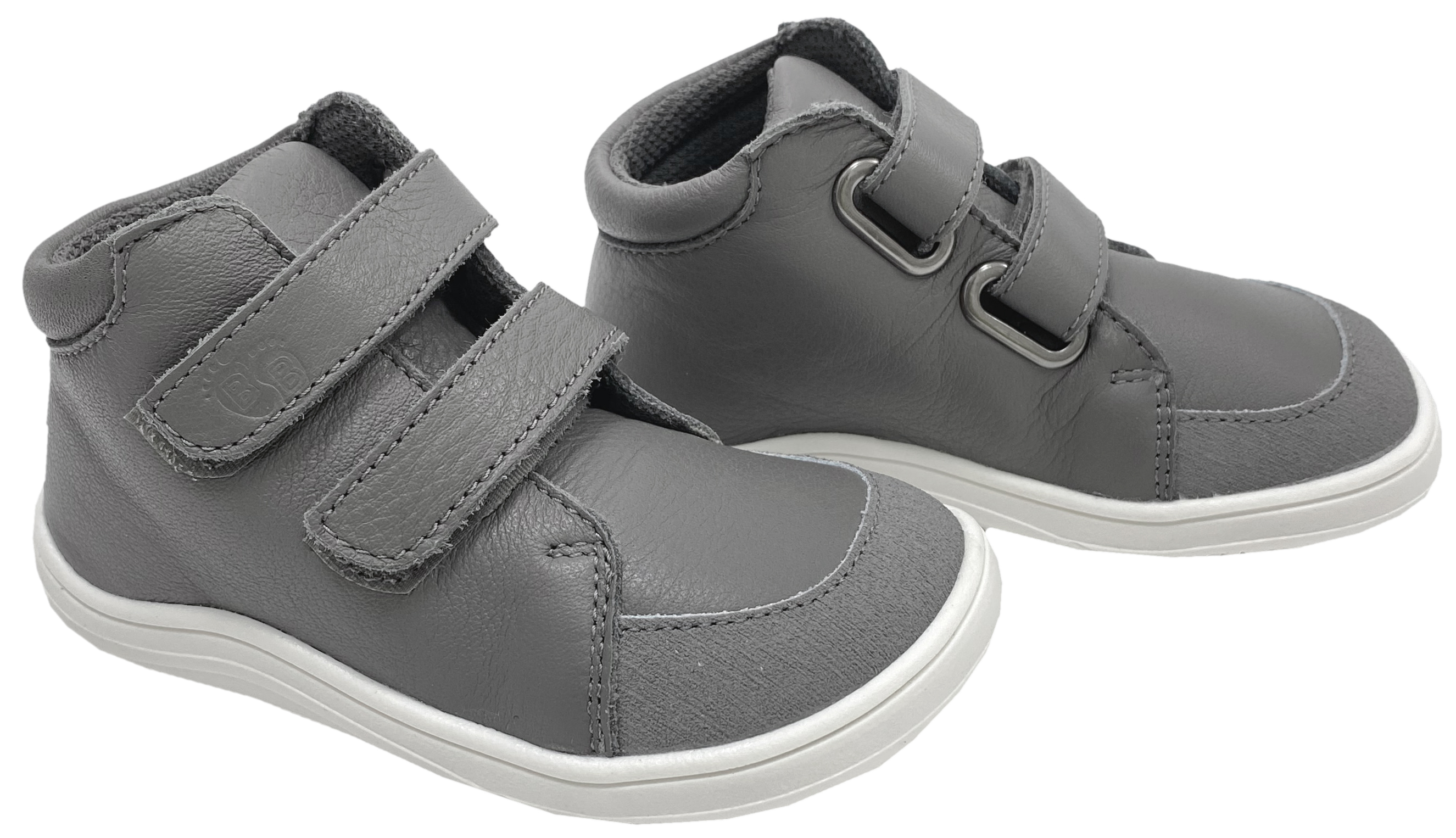 Super bequeme Halbschuhe in Mid Top Höhe aus weichem italienischem Leder mit TEX Membran und weichem, dünnem textilen Futter für den Übergang, mit Doppelklett zu schließen, aus der Zentralslowakai von BABY BARE - ein kleiner Produzent von Barfußschuhen mit Minimalsohlen für Kinder.