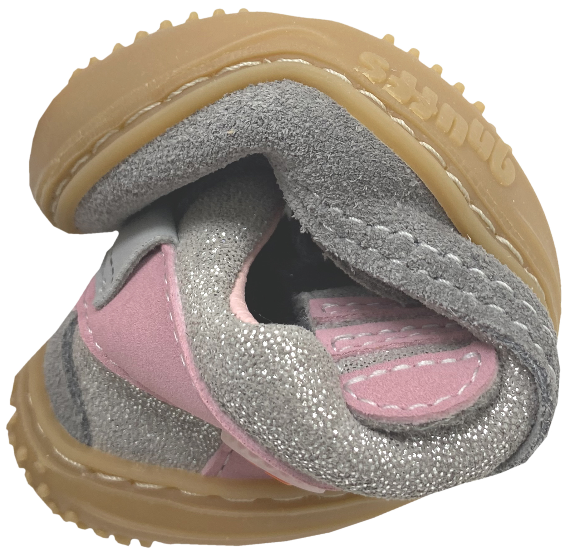 Produktinformationen "Leder Sneaker / Barfußschuhe in Grau / Rosa Glitzer * AHORN * von QNUFFS by Ricosta"