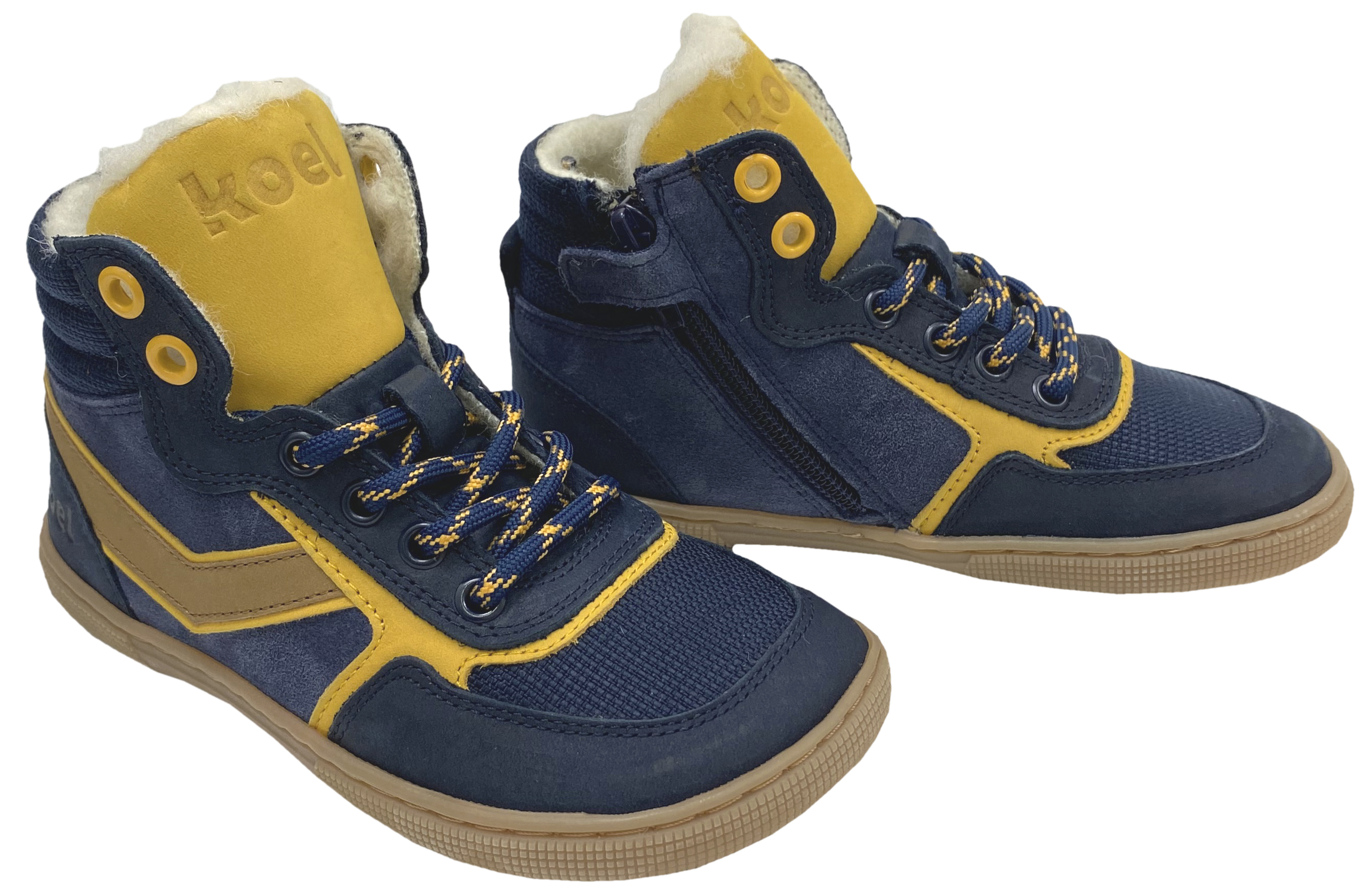 Lässige und absolut flexible Barfußschuhe High Top Sneaker mit weicher Wolle abgefüttert, Innensohle ohne Erhöhungen und herausnehmbar, auf dem etwas breiteren Leisten ( verglichen mit den "B" / Klassik Modellen von KOEL ) mit normaler bis flacher Spannhöhe von KOEL Barefoot für coole Teens und Kids.