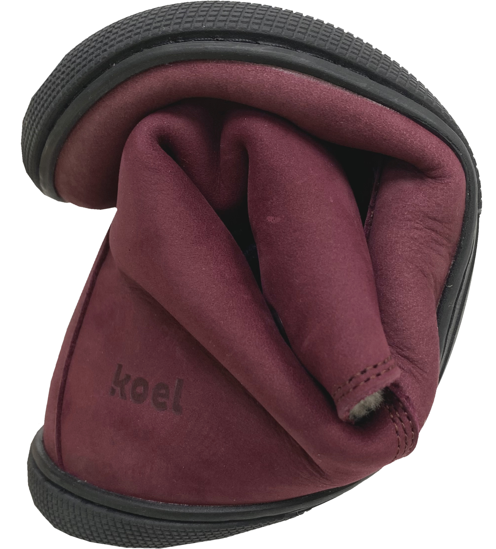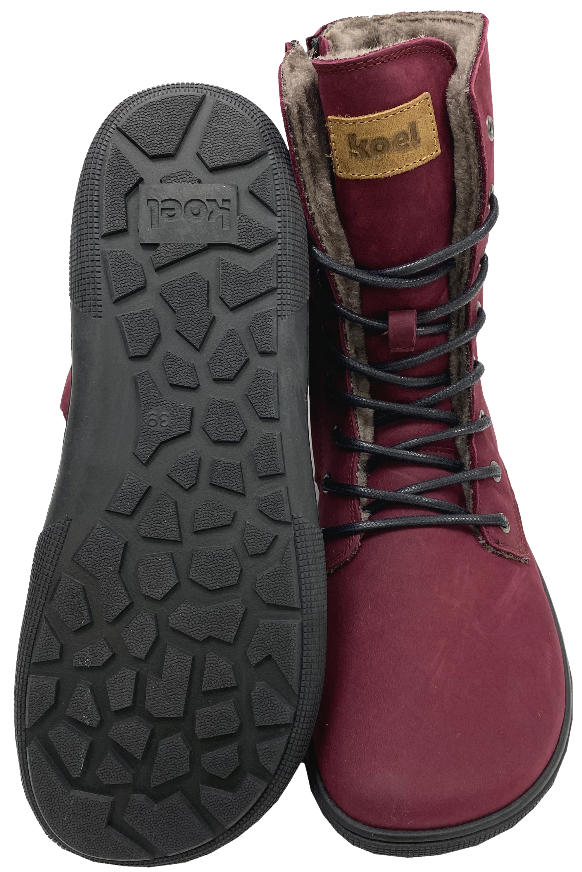 Leder Stiefel mit Lammwollfutter / Barfußschuhe in BORDEAUX von KOEL >FARO< für schmale Waden