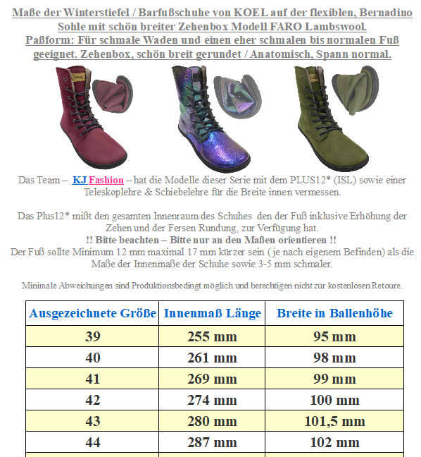 Schlichte gefütterte Barfußschuhe für kalte Tage in halbhoher Stiefel Form mit warm haltendem Schafswollfutter aus hydrophobiertem Nubukleder von SHAPEN Barefoot aus der Slowakai, hergestellt in der Europäischen Union. > Bitte beachten Sie das Maßbild und unsere Passform-Hinweise, um Rücksendungen zu vermeiden. Bei Fragen kontaktieren Sie uns gerne vor dem Kauf per Mail. – Ihr Team KJ Fashion < Modell: COZY 2.0 Nubuck BlackMaterial: Hydrophobiertes Nubukleder | Futter: Schafswolle , Innensohle fest verklebt aus Schafswolle | Sohle: robustes SBR Gummi, sehr gut quer und längs flexibel mit einer Stärke von 4 mm + 4 mm ProfilPaßform: Weite (diese bezieht sich auf das Volumen): für normal hohen bis minimal höheren Spann geeignet | Breite (Stehfläche Fuß) Normal bis etwas breiter, gerade im Vorfuß | Ferse: normal | Zehenbox: sehr gut anatomische Form, für dominanten Großzeh geeignet - Winterschuhe bis gut über den Gelenkknöchel gehend, bis etwa zur Mitte der Wade - gut sitzender Schaftabschluß, variierbar durch die Schnürung - seitlich mit einem Reißverschluß zu öffnen - innen mit einem kuschelig weichen Wollfutter ausgelegt, auch die Innensohle ist abgefüttert - Vorfußbereich angenehm weit und breit geschnitten zum optimalen auffächern der Zehen beim laufen - Laufsohle aus Styrol-Butadien Kautschuk, sehr robust aber dennoch quer und längs flexibel, fest vernäht für eine lange Lebensdauer, mit 4 mm Profil für einen guten Grip Ein super bequemer, warm gefütterter Barfußschuh ohne jegliche Erhöhungen, absolut weich und hergestellt in der EU - von SHAPEN Barefoot.