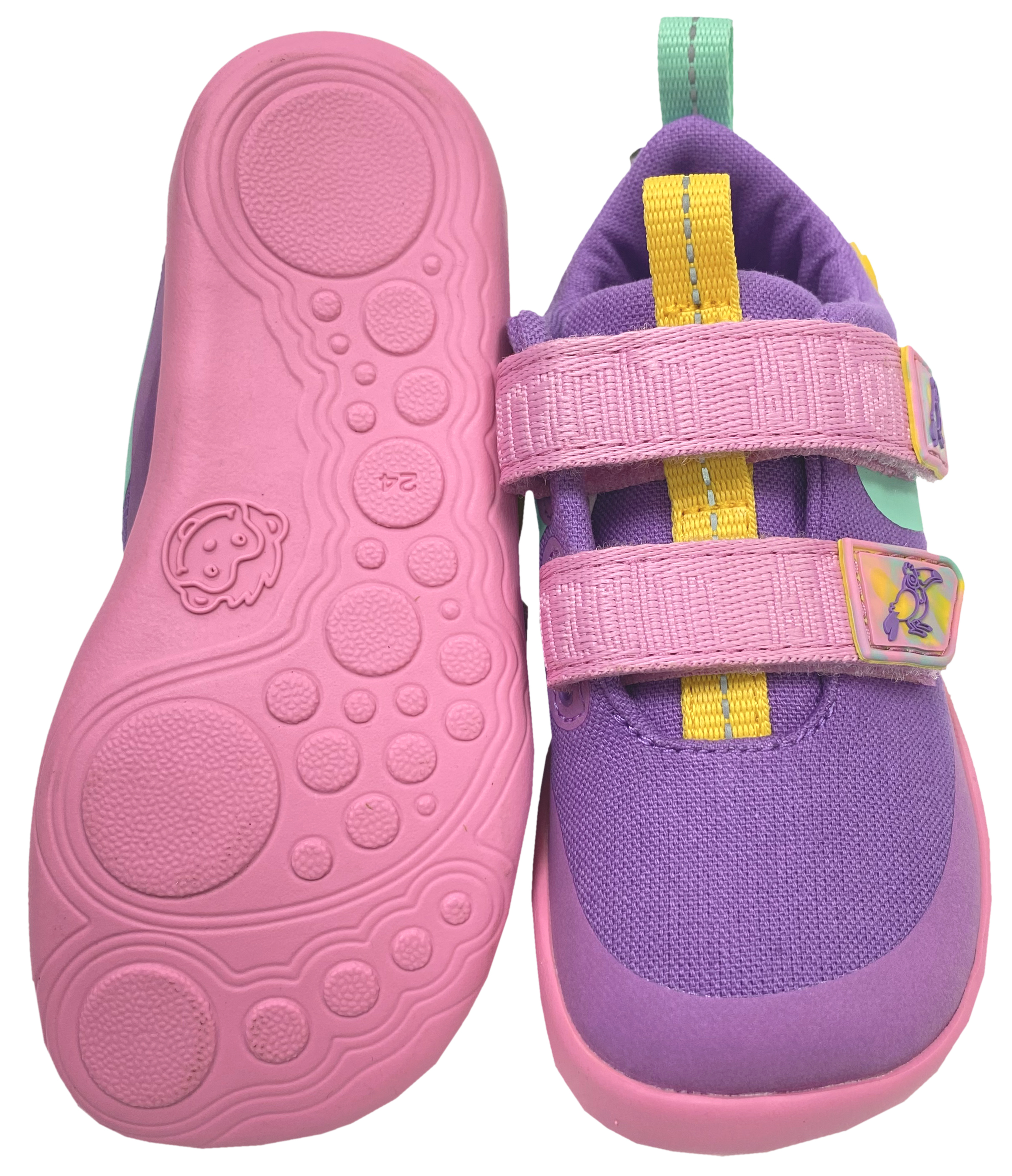 - Dünne, flexible Sohle, sie ist nur so dick wie nötig, nicht gedämpft, so dass Kinder ihre Umgebung und den Untergrund spüren, auch wenn sie Schuhe tragen.